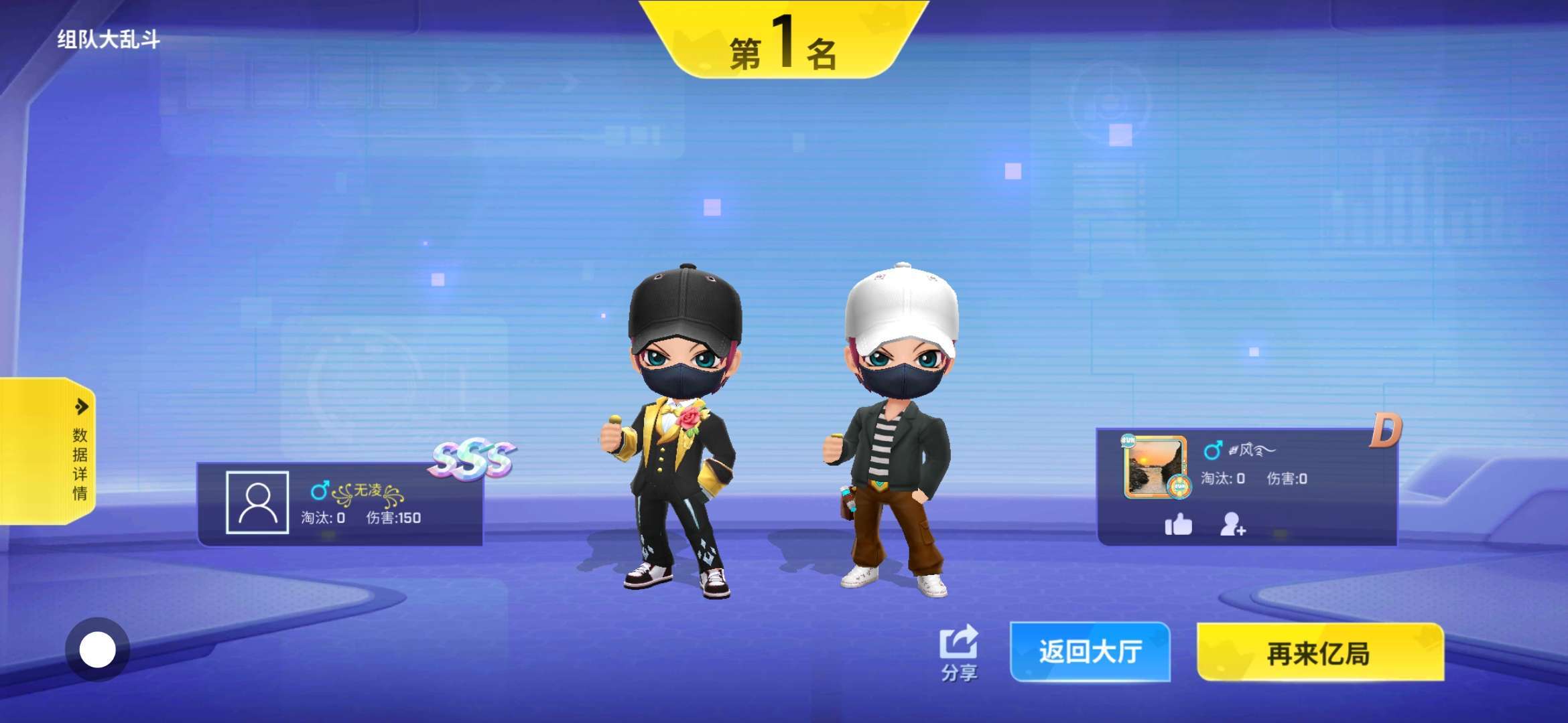 当时给我震惊了,我就不小心卡退了进去之后,所有人装备都没有,我搁那到圈里,剩下人被毒死,第一名结果我去看战绩,跟别的一队同排第一