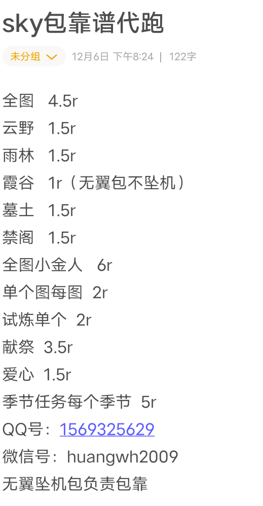 光遇包靠谱代跑