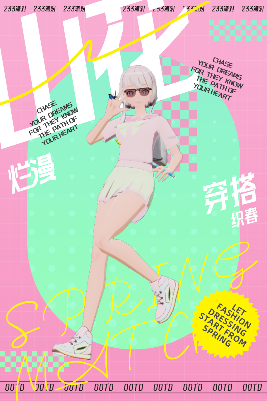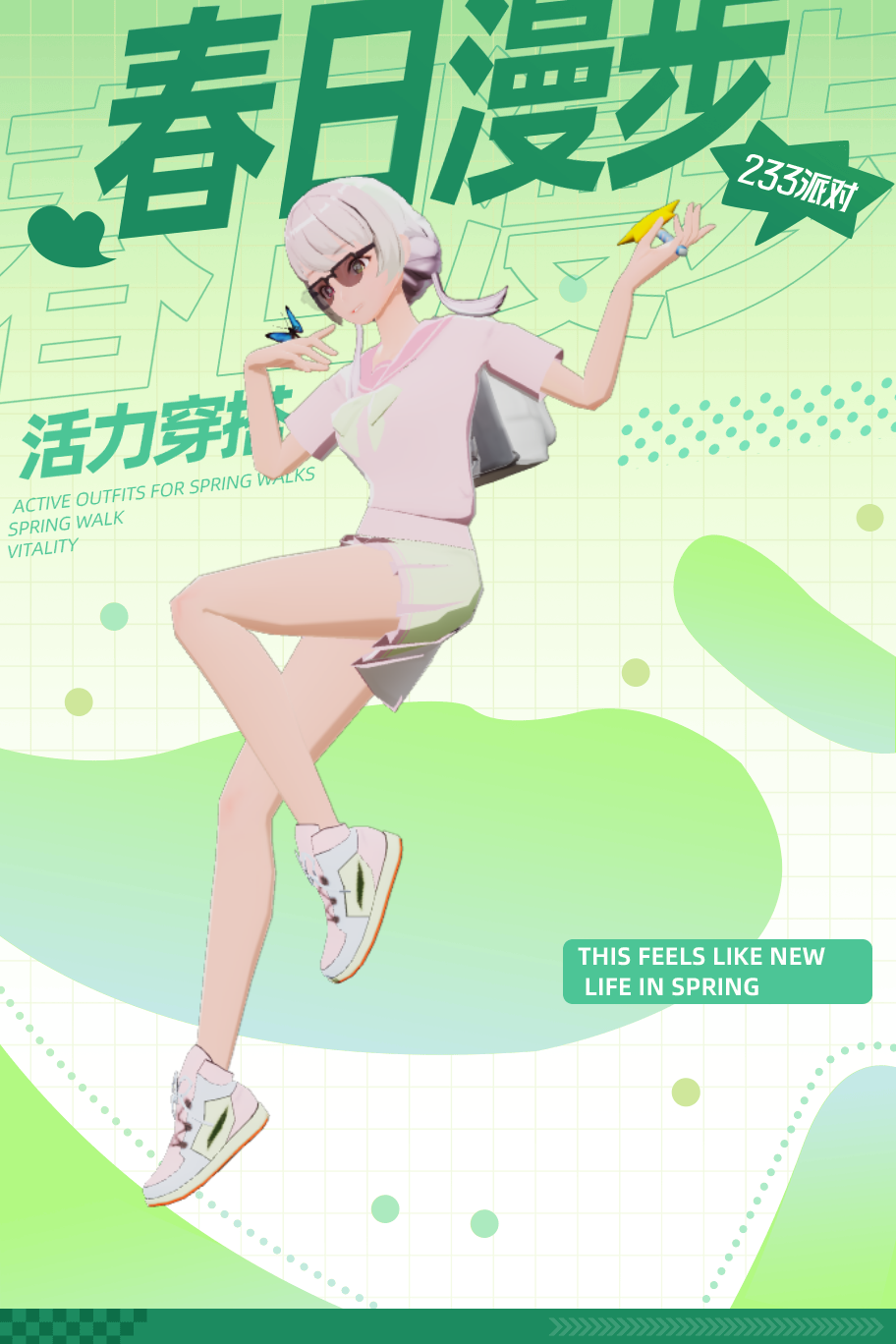 穿搭,穿一次春天。活力满满的,校服粉配绿。