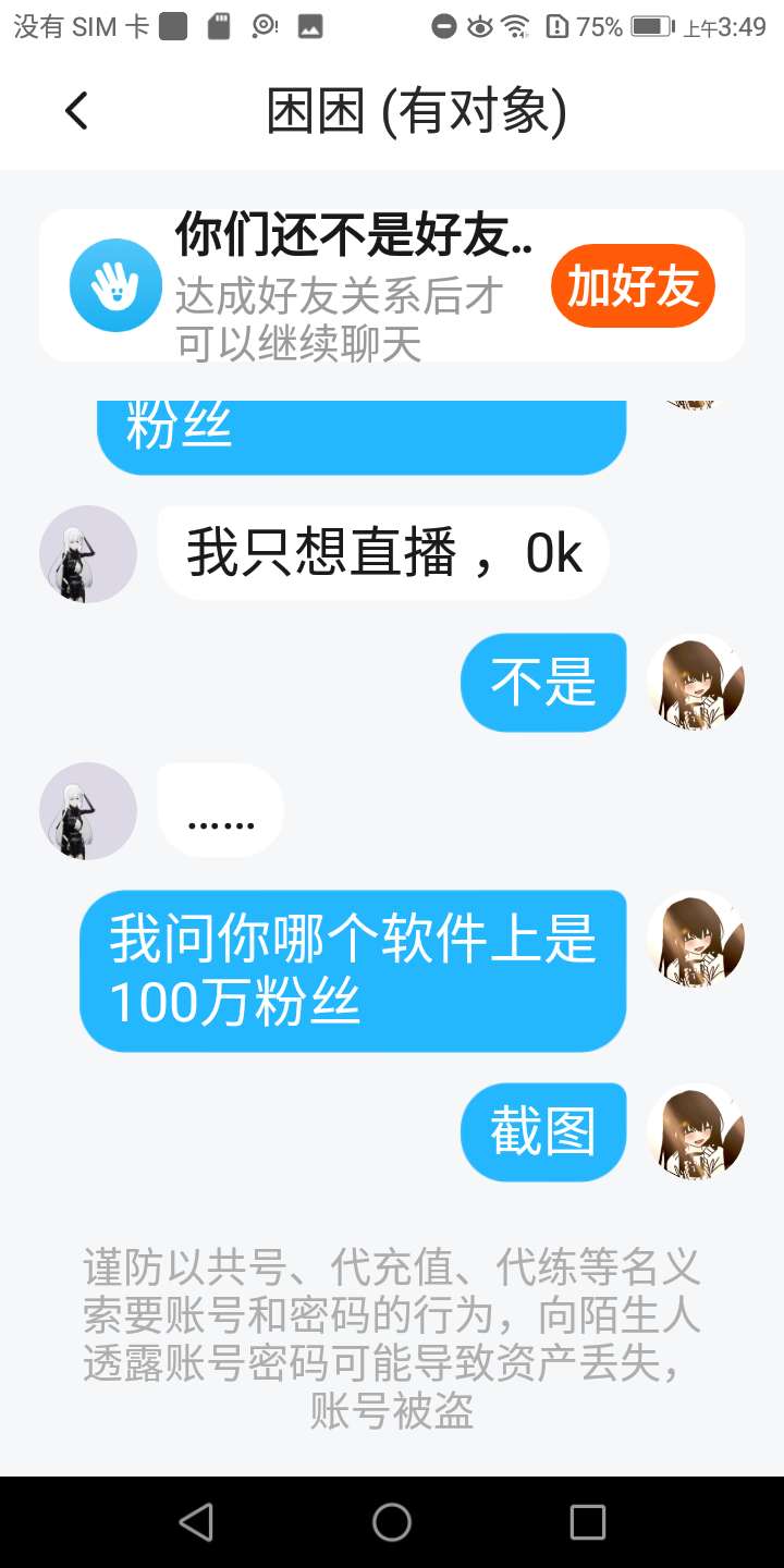 不是牢底我问你是哪个软件破的100万粉直接把我删了啊,还说你是主播我滴妈我居然还相信了,如果想让我删帖子请把你破100万粉丝的截图给我