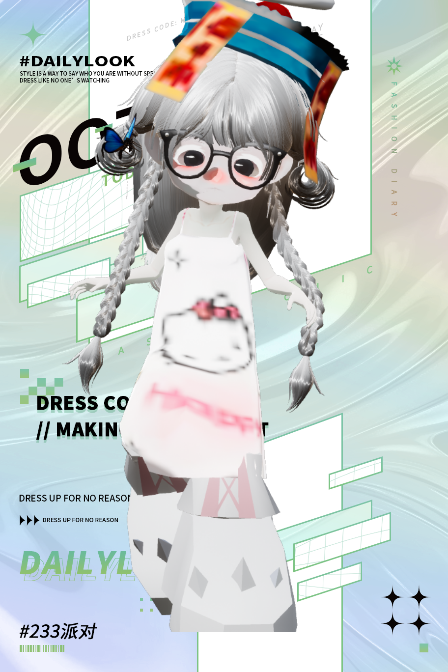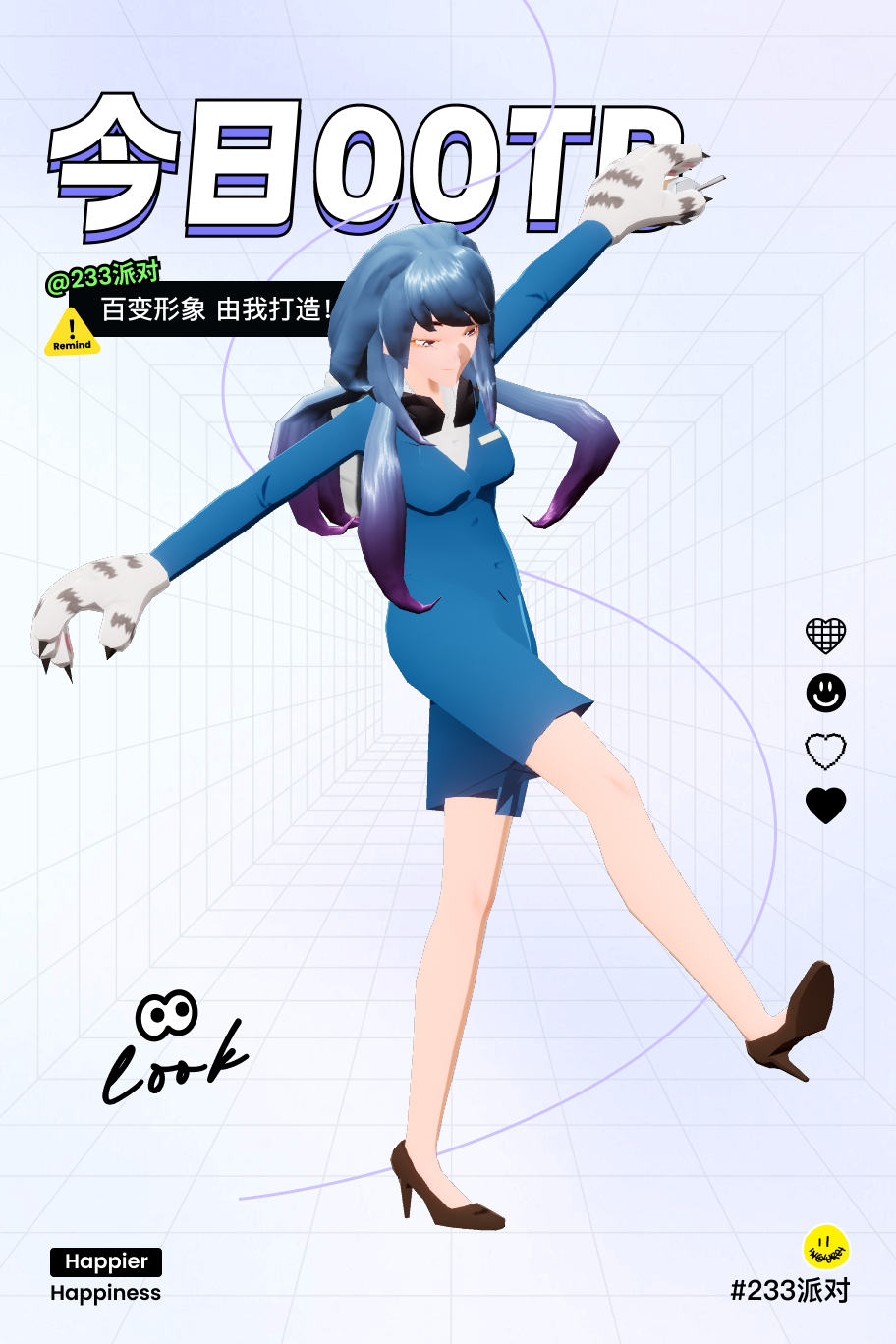 今天装扮的好看吗。不好看的话,在公屏上打一点吧