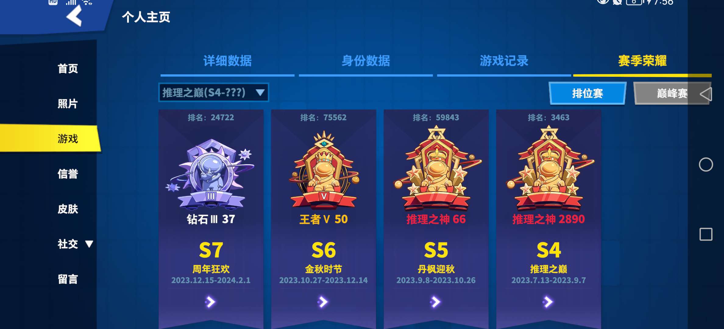 我最高段位才推理神,只拿过多1000MVP