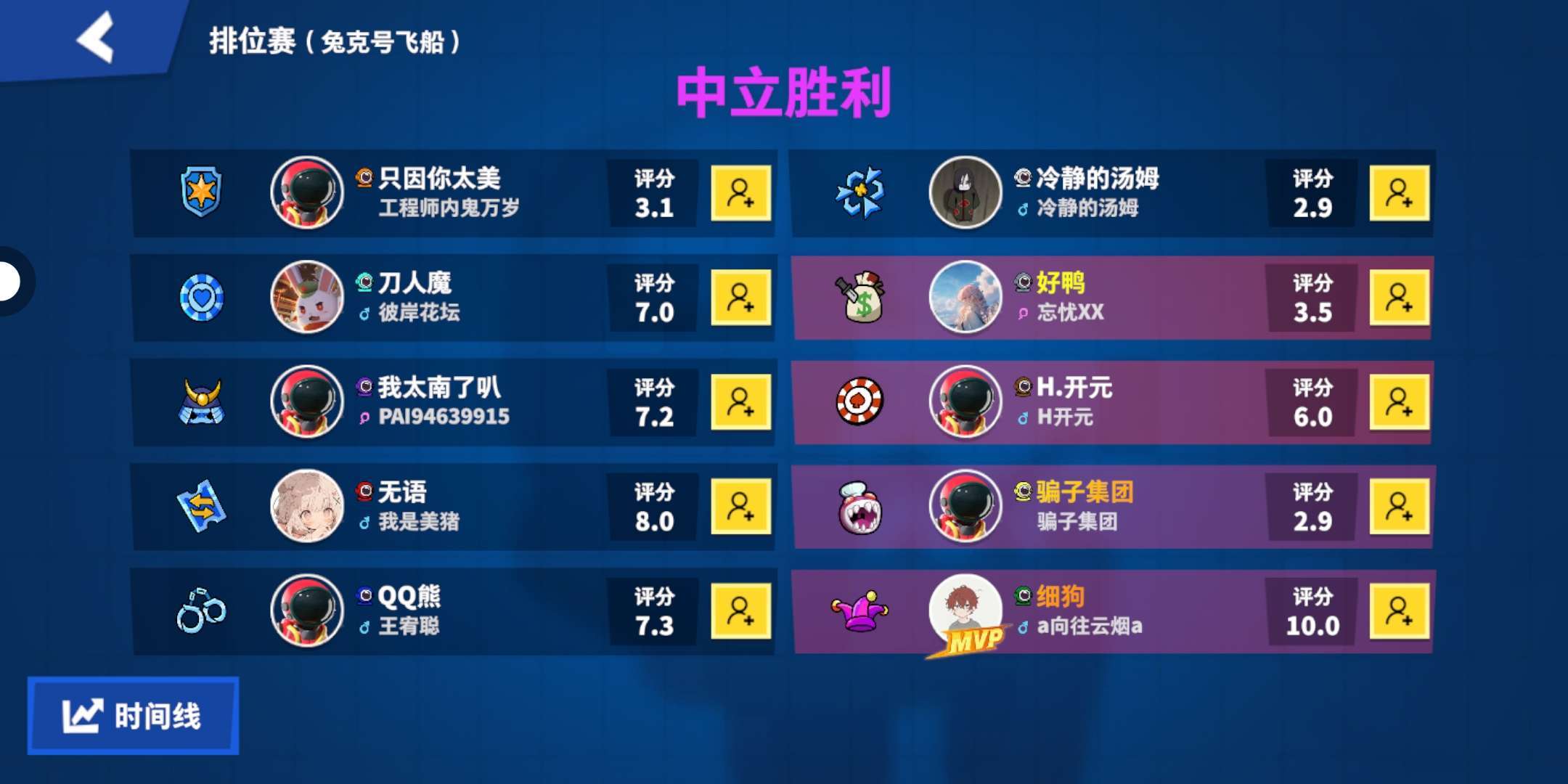 为了怀念这个账号,我一直在用第一次玩嘿嘿太空杀是的昵称:糖粉巧克力派,来表达这份怀念(如果在游戏里见到这个昵称的,基本可以确定是我,因为我从来没遇到过重名的)我一开始就买了小糖豆套装,以纪念嘿嘿太空杀的美好岁月。