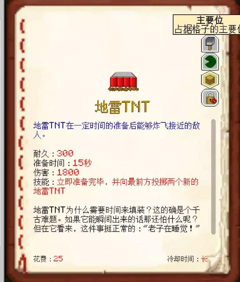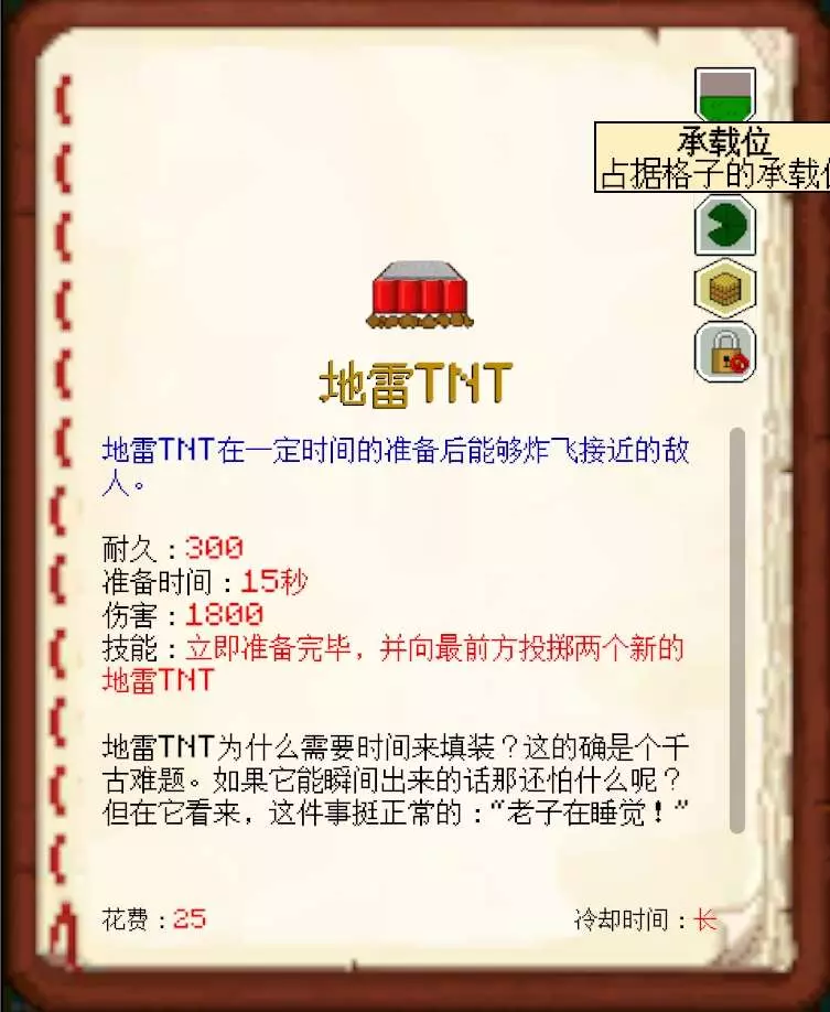 MC大战僵尸2的部分器械既占据主要位(如发射器、冲击活塞等)也占据承载位(如睡莲、重力板等)。该特性并非bug,只是说明该器械不能放在睡莲、重力板等承载器械上,目前这类器械均为地面器械(包括地雷TNT、死灵墓碑等)