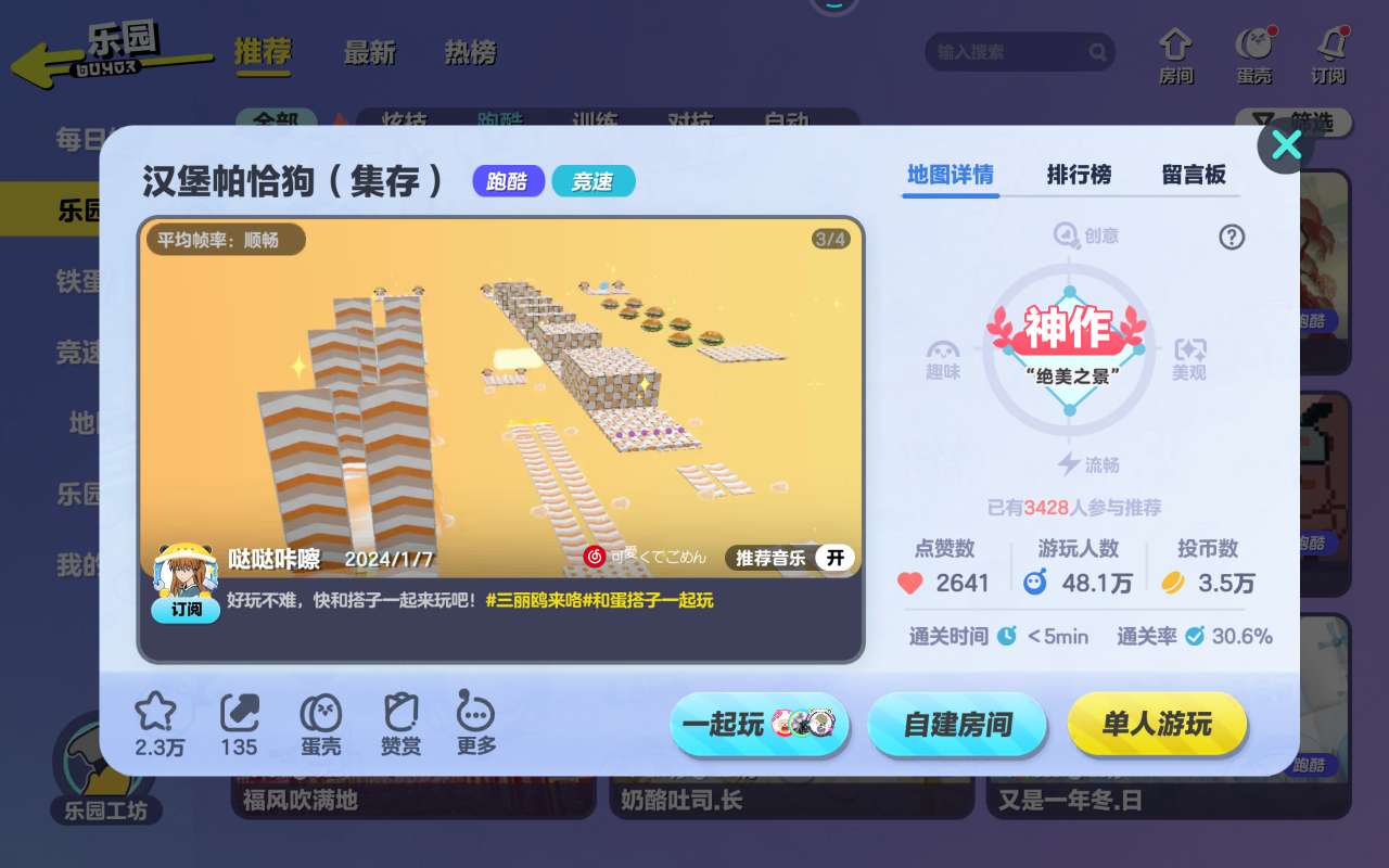 [盘点乐园里好玩的地图]咱们废话不多说,上地图名:汉堡帕恰狗(集存)推荐指数:🌟🌟🌟🌟