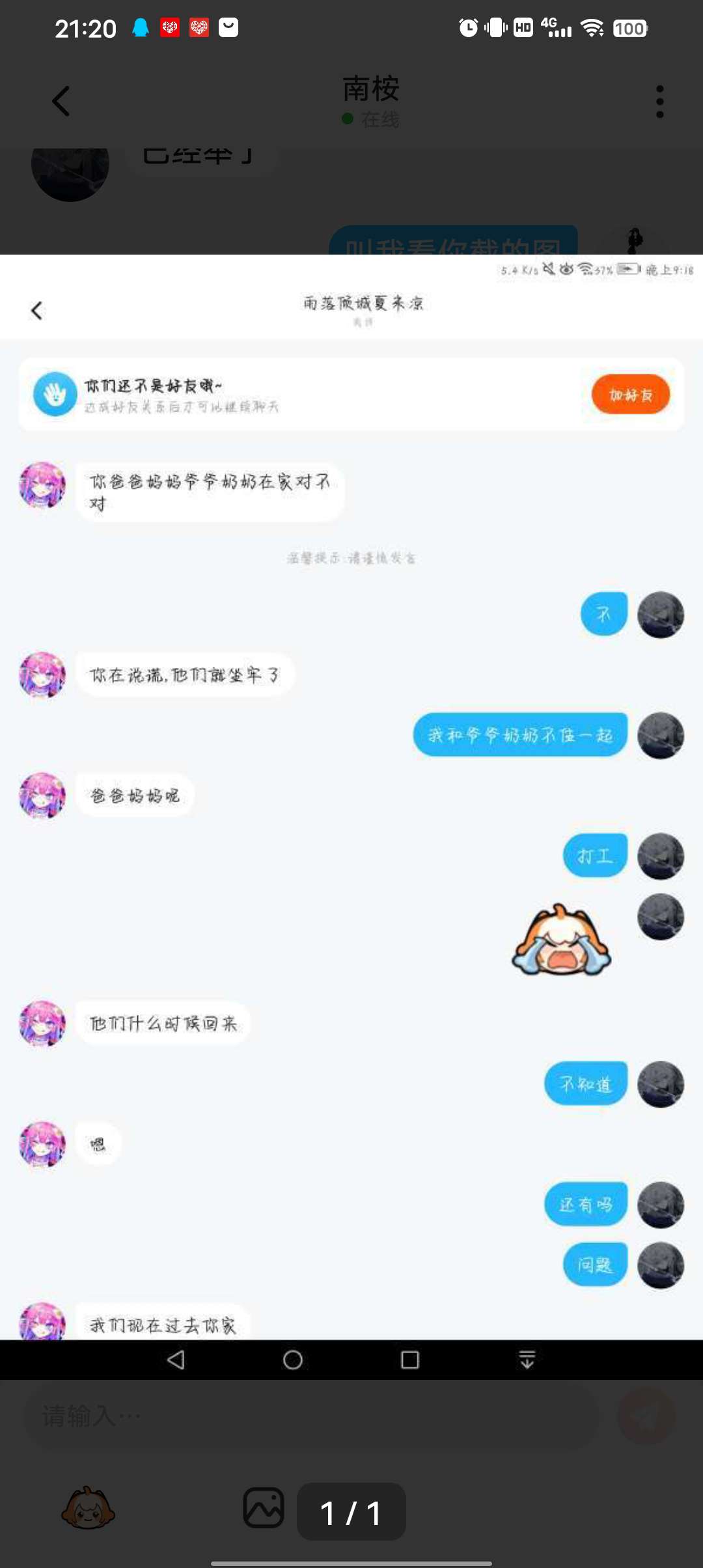 骗子,不要相信这骗子他说我骗了别人五万,我朋友加他,然后他他那个他问我朋友的父母在不在家?