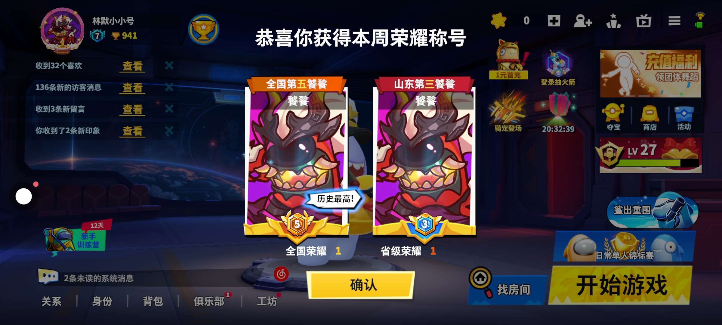 我开的小号直接上国服第五!