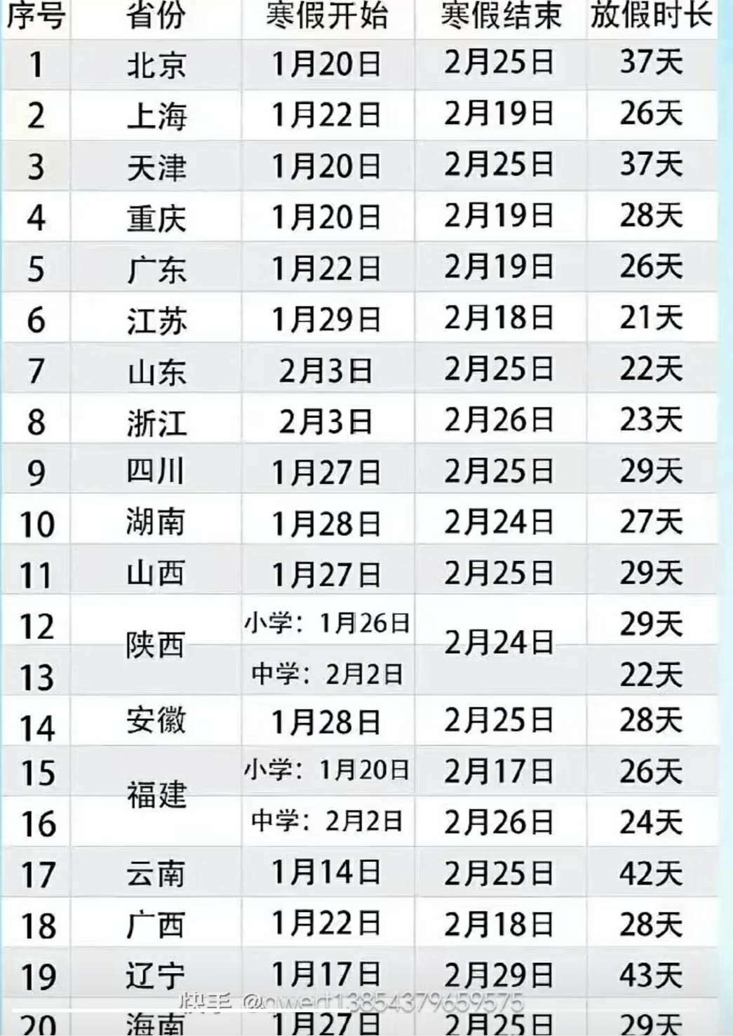 放寒假的天数表(天数少的残忍.不想看的最好别看)