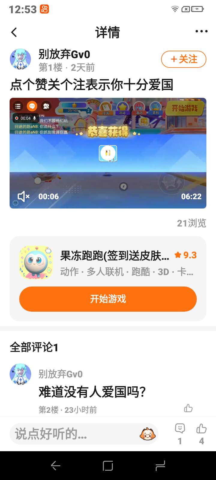 她的帖子是些爱国的点个赞和关或者是不评论=不爱国