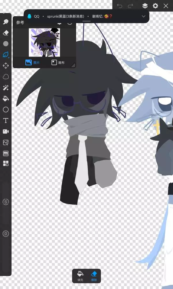昨晚画着就睡了,还没画完。熬到两点,早上又要早起我总共才睡了四个小时,我不行了,我在画#节奏盒子sprunki私设 #sprunki黑蓝 #七夕#禁盗图截图描图