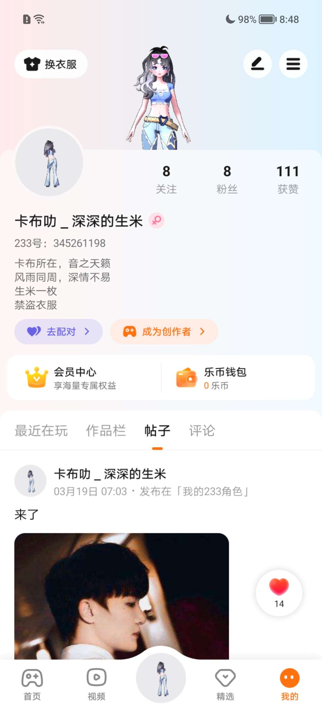 浅浅捏了一个脸,换了个发型,那个发型不错