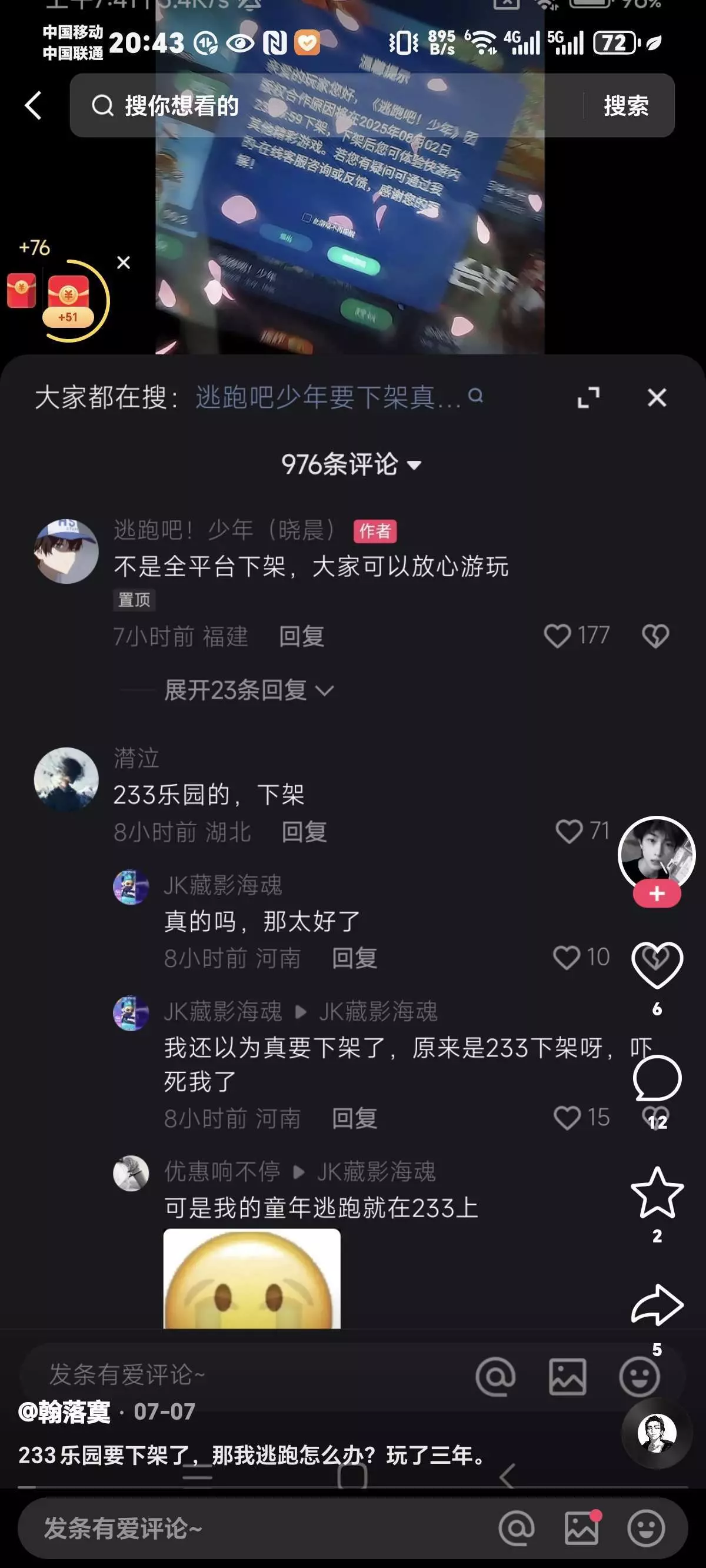 看了个快手 发现有人发逃跑下架了 真的假的 求回复
