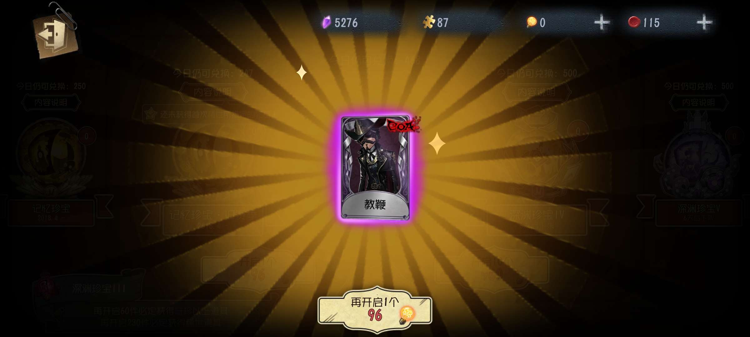 我玩的角色(求生):入殓师,先知,骑士,牛仔,小说家,病患,邮差,囚徒,古董商,记者(闲着无聊会玩会小女孩)