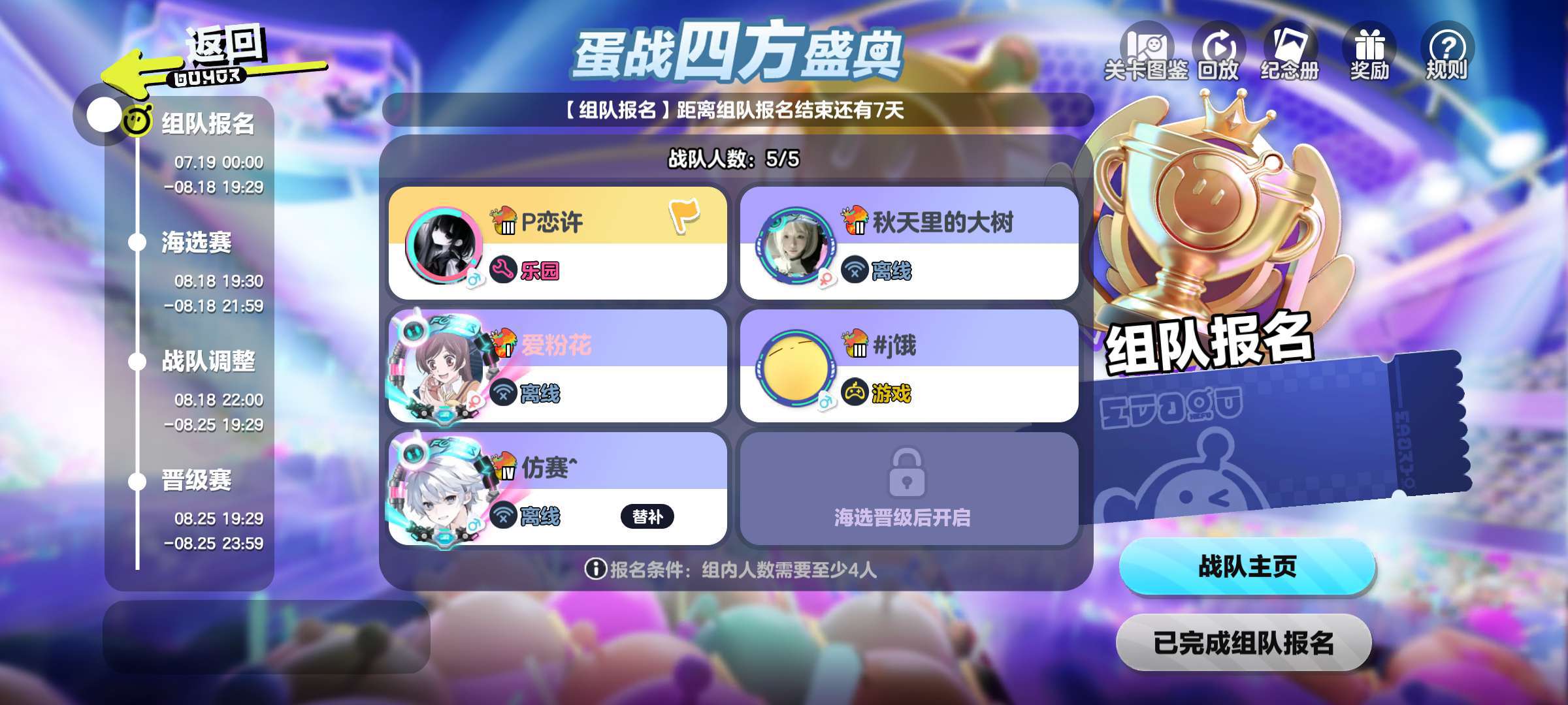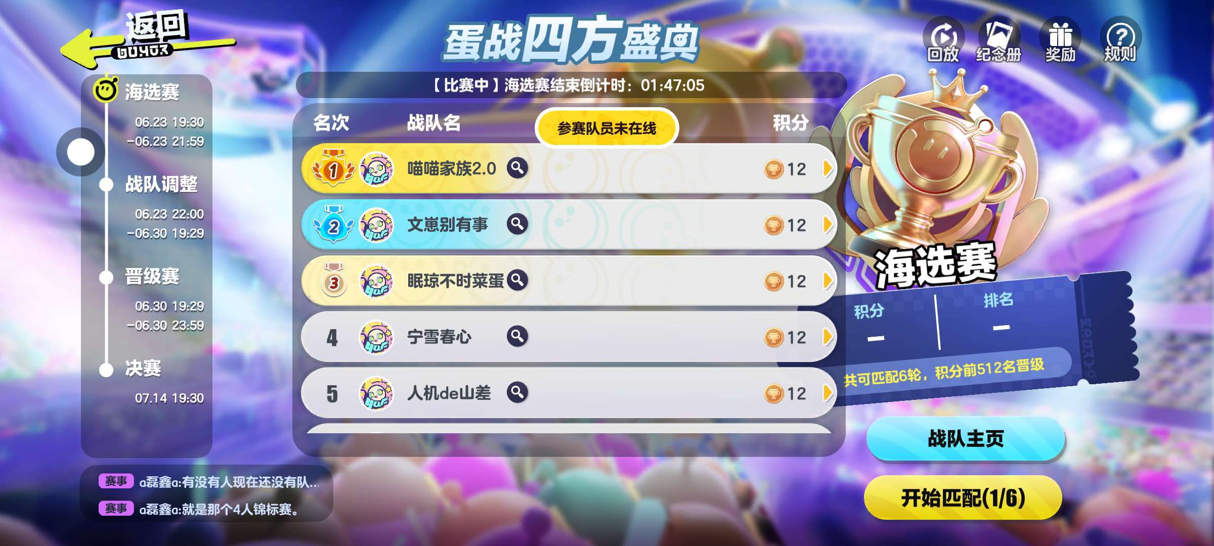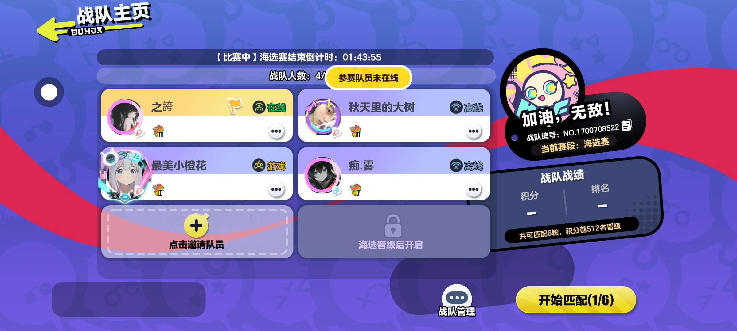 队友不靠谱,都开始了,还没上线