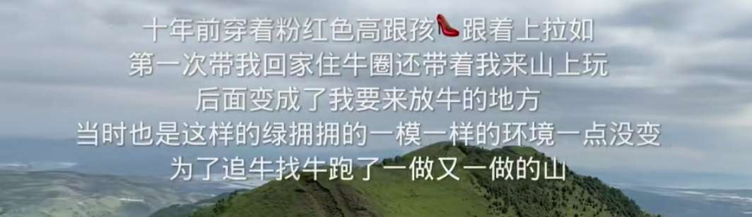 看到小英前天的视频,真的好感慨十年前,"穿着粉色高跟鞋,跟上拉如第一次带我回家住牛圈,还带着我到山上玩,后面变成了我放牛的地方,当时也是这样子的环境一点都没变,为了追牛找牛,我爬了一座山又一座山"用大山诱惑他,又用大山困住他 没有像样的房子,只有一个人干不完的活,和大宝小宝挤在一个小桌子里吃饭,他一直知道自己生活很苦"说句心里话,我过的是个不是个正常人的生活,我们隔壁啊,确实比我们过的好,但我愿意笑着面对我的生活,一点是我真的是,就因为你们,我觉得我改变了很多,虽然我以前也是个爱美的人"但他却依然坚强乐观,生完小宝以后月子都没坐完就要下地干活,所以才留下了怕冷的病根,只能常年戴着头巾,去年好不容易视频有了热度,却被质疑剧本"我在群里面确实说我是剧本,我是假的,这一切都是假的,我说过"现在轻舟已过万重山,小英在山间跳舞的样子像一朵鲜艳的红玫瑰,真心为小英逐渐活出自我而感到开心