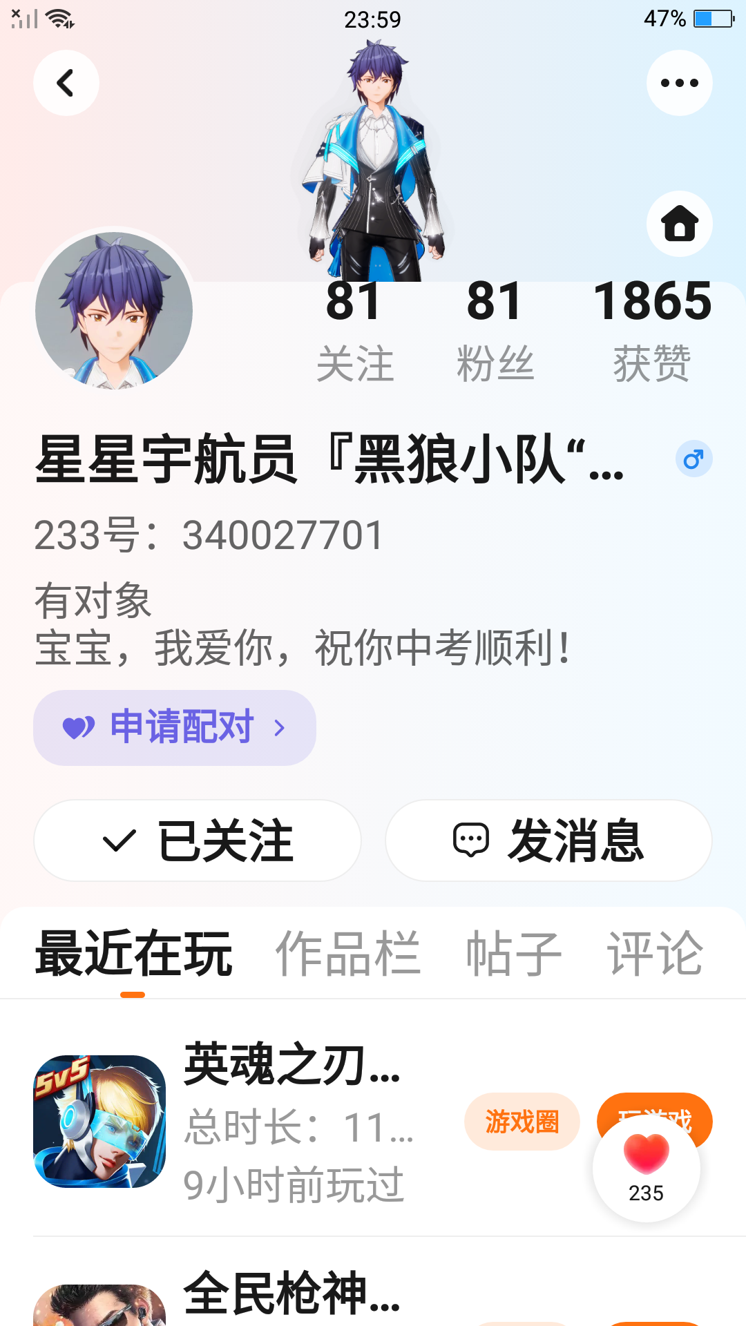 我现在我玩的是我哥哥的号,我是他的妹妹,亲生妹妹。如果性别变成男的话,是我哥玩,性别变成女的话是我