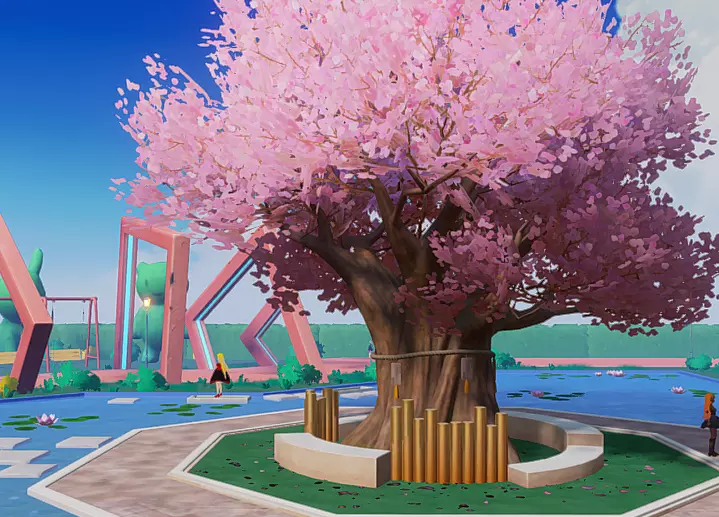 春天的四季在樱花树下女孩们在等待你