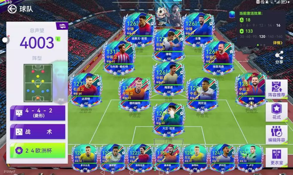 现在阵容就这样了,过几天就新高一开学了。天梯赛和经纪人天梯也打到史诗了。我现在还有3个卡包,不知道明天能不能出个好一点的欧洲杯左边卫。😁