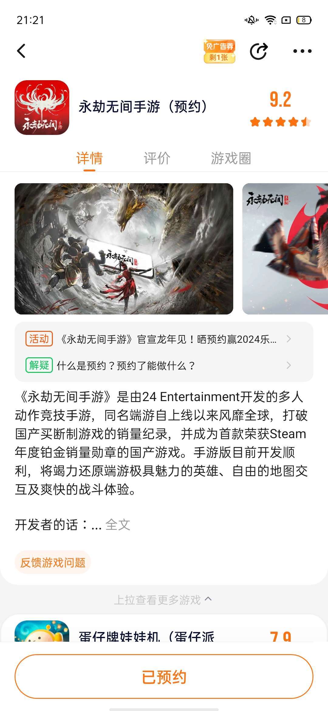 我已预约永劫无间手游