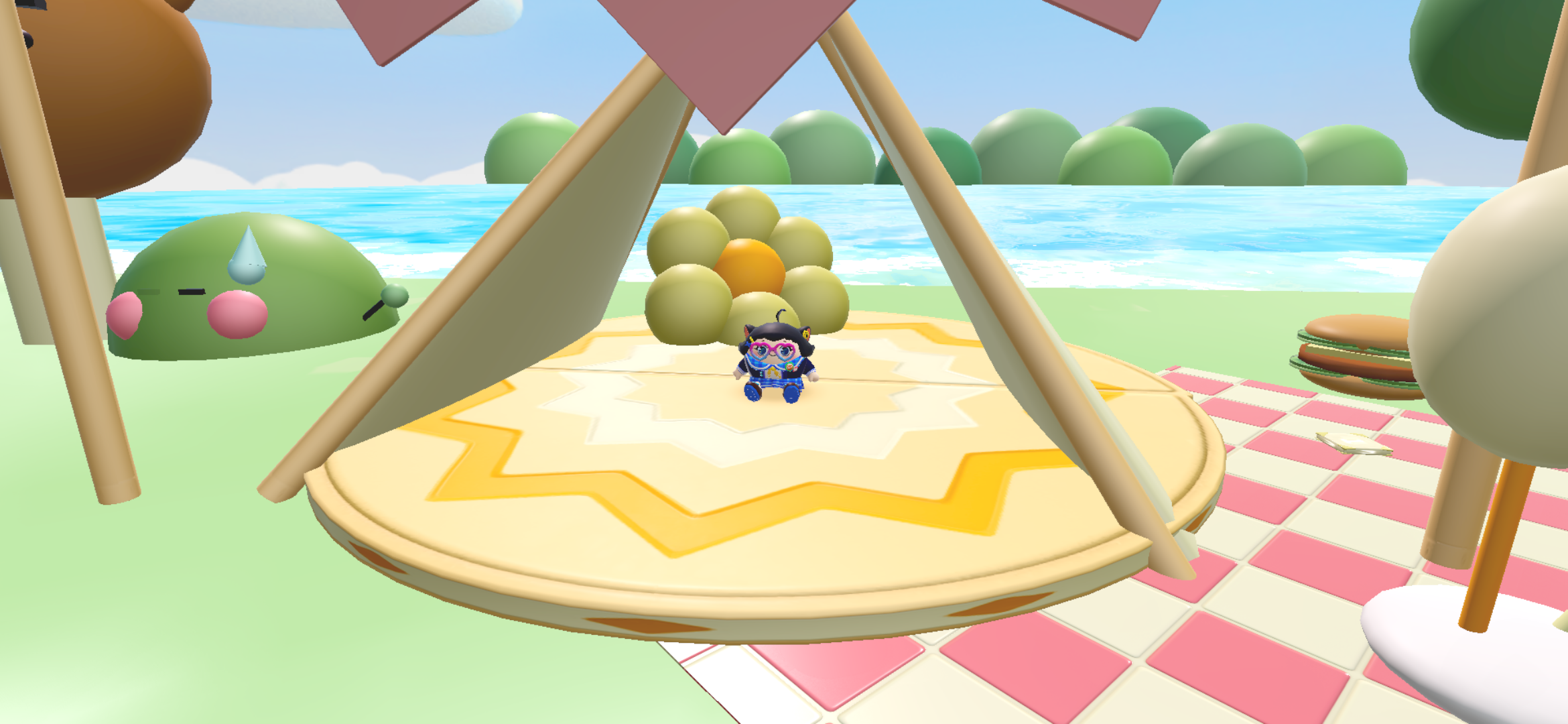 在这个乐园里面的地图真是无奇不大,无奇不有,你看啊,在这跑酷后面还有个小房子,你跑酷中跑累了,还可以去秋千里面休息一会,真是太好了
