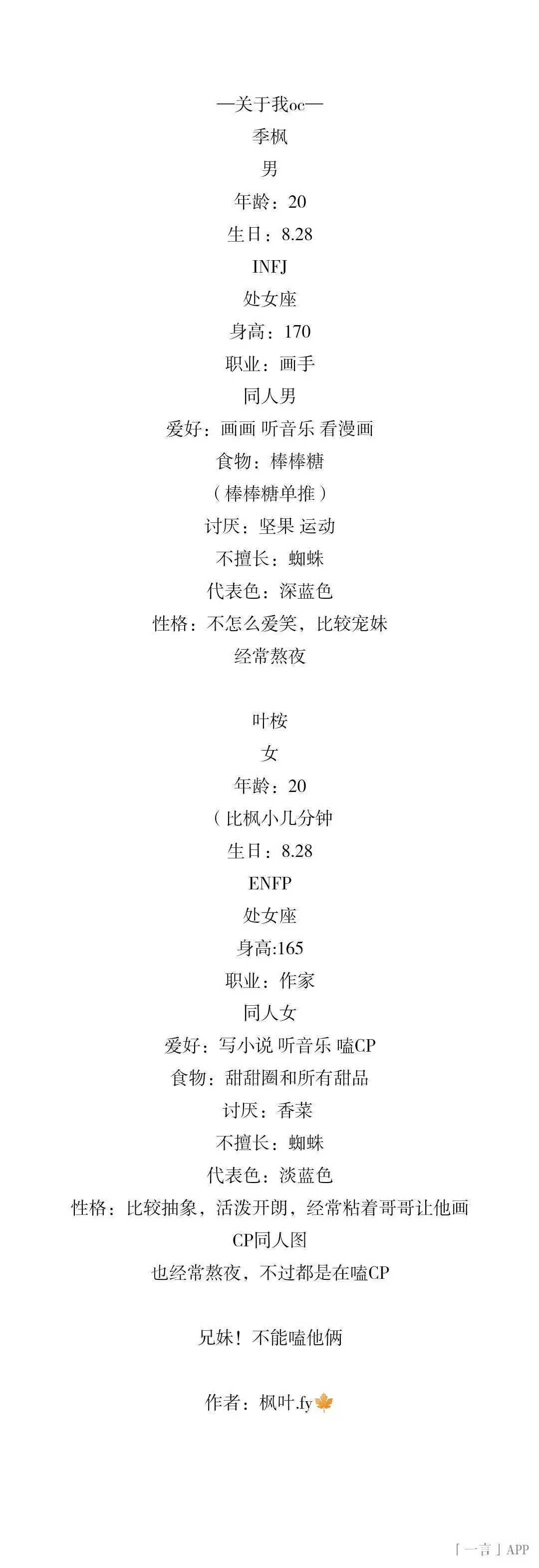 回归一下,发一下OC立绘和设定