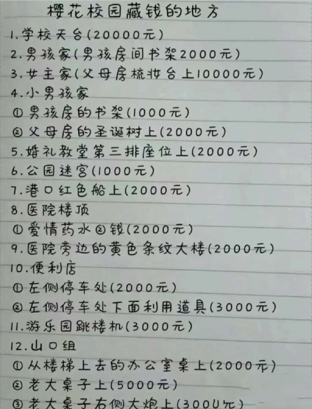樱花校园模拟器藏钱的地方