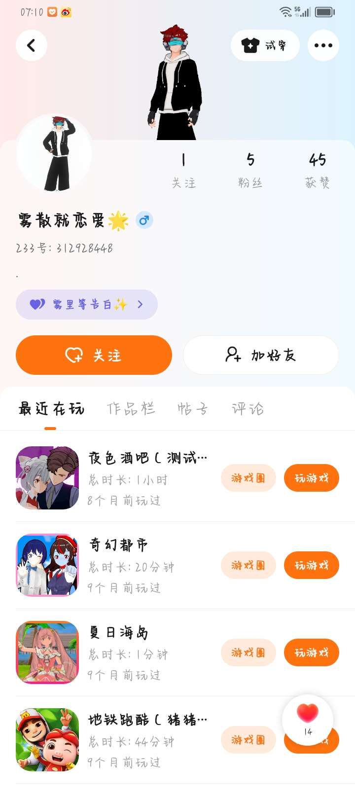前提:你必须得用两个号关注他,然后呢再点赞。这样子你的点赞就会很高