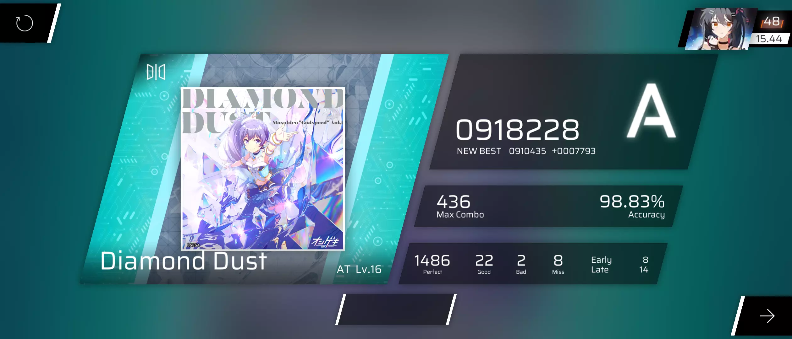 入坑的时候没想到可以达成这个rks,15rka的时候,瓶颈期了数个月,当时以为我的极限就在15.3了,今年8月份的时候,太久没玩的奖励来了,很多谱面的手癖都解了,开学的时候,15.92rks达成,maimai更新第三天,16rks达成