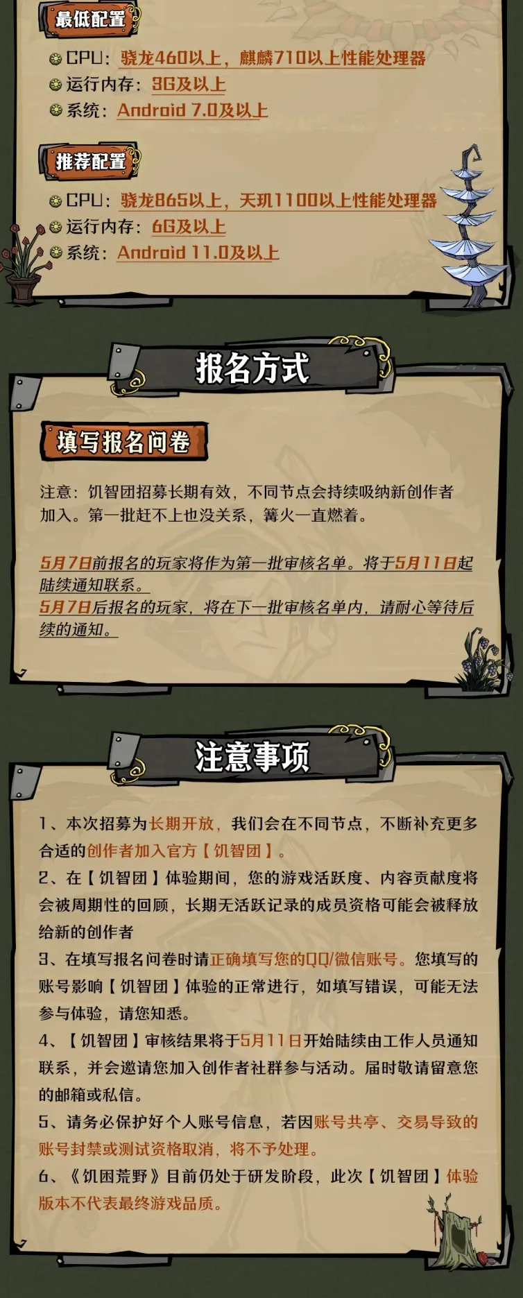 游戏正式上线时,请先下载《饥困荒野》并注册角色,然后前往活动页面,领取到玩家指定的角色,详情请关注上线相关公告。
