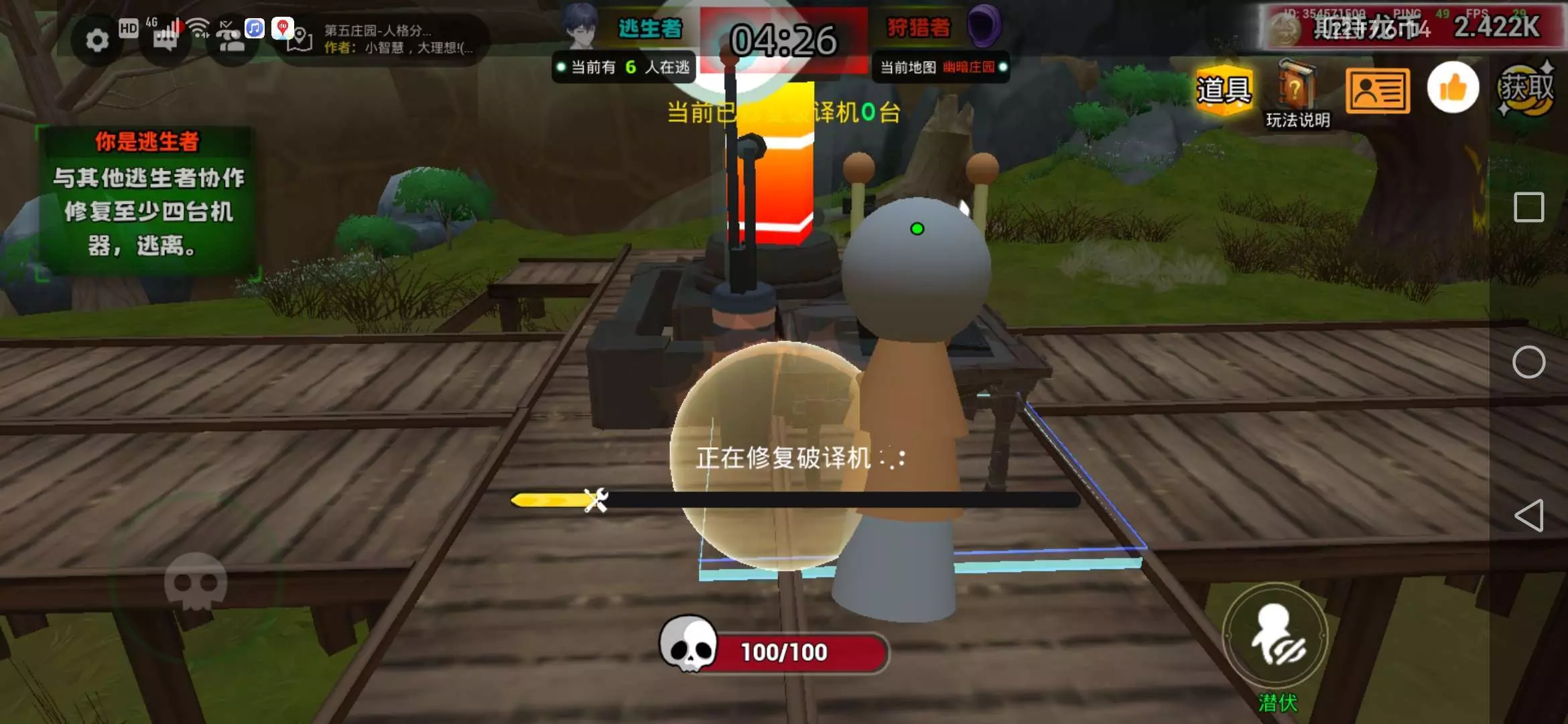 在选角色界面按下敬请期待,然后就会变成一个光球,没有技能,容易被忽略,监管根本不知道👿