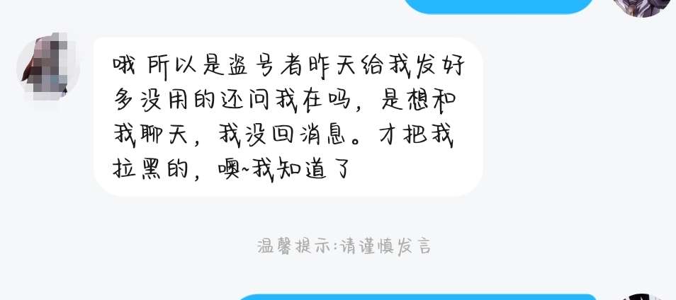 大家好,我是禾悠,我的号被🔪了,我现在并不清楚🔪号者是谁😌