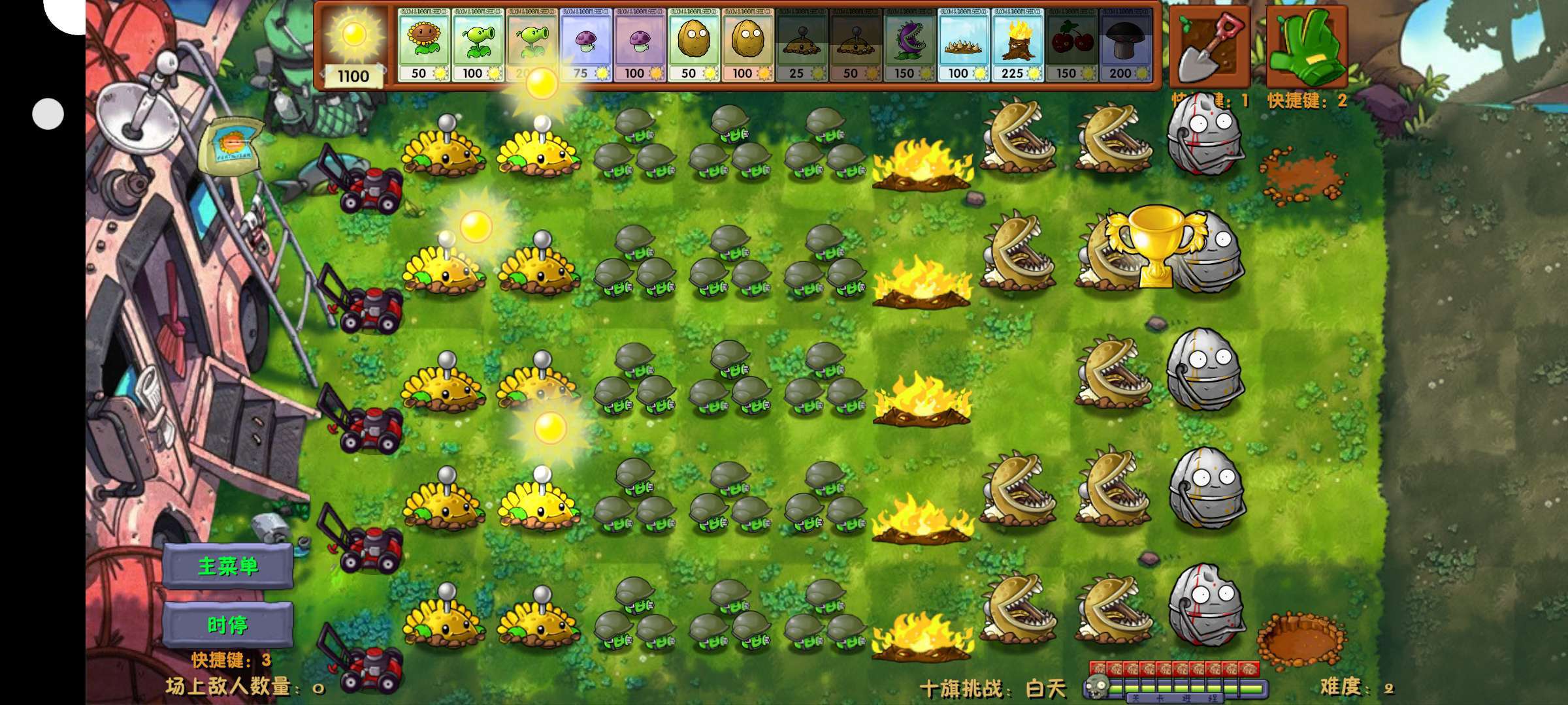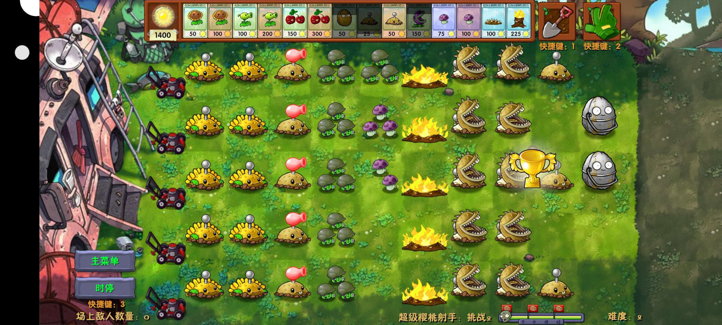 玩这有个小建议,打有植物射手的僵尸,可以尝试用机枪小喷+地火,僵尸打不到,前期的话用地雷大嘴花十阳光地雷,最好带个樱桃,开局有阳光的情况下先炸出一个3×3后期好合成。