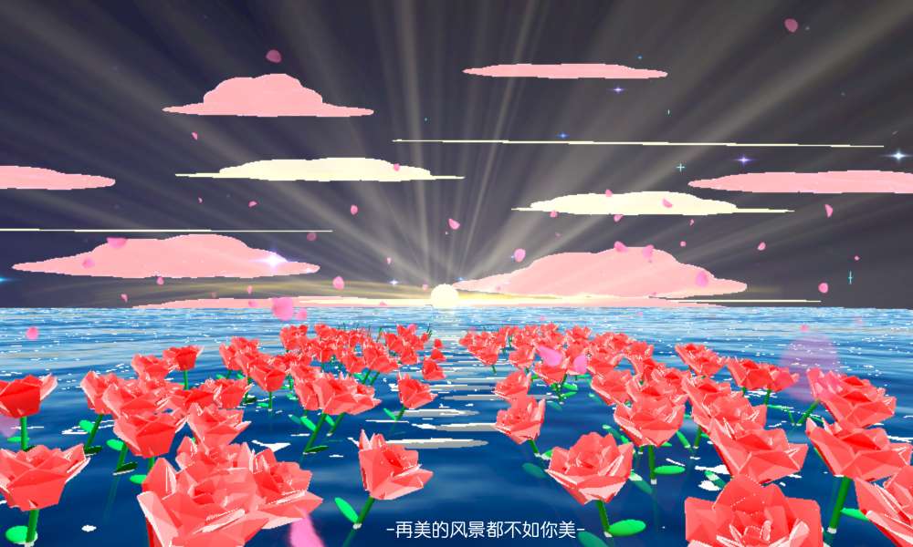 第二个场景主题是花海,景观有太阳、云彩、海和玫瑰花等…