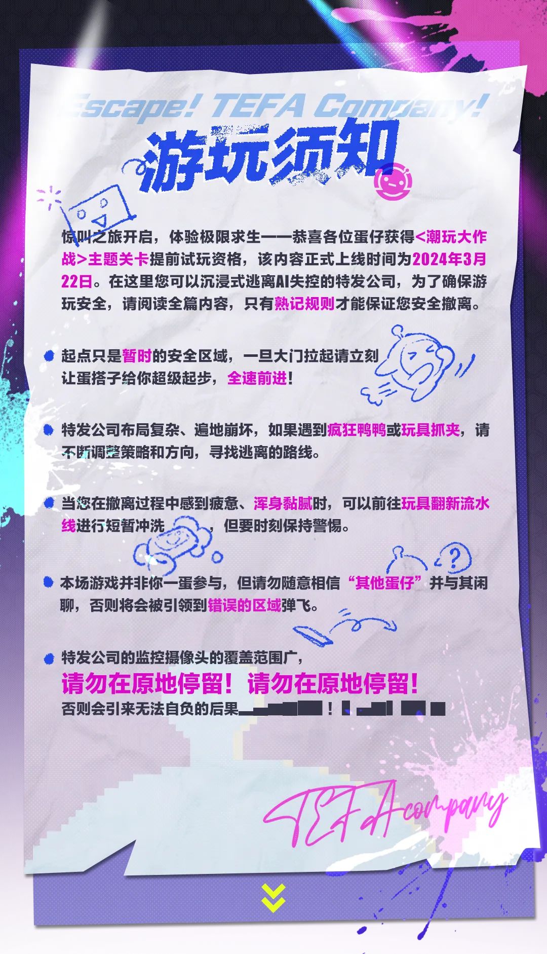 游戏将于2024年3月21日10:00进行周更停机维护,预计12:00完成更新。期间登陆入口将暂时关闭,请各位生还者知悉,提前做好下线准备,此次维护给您带来不便敬请谅解。维护结束后,根据提示完成更新即可体验全新内容。