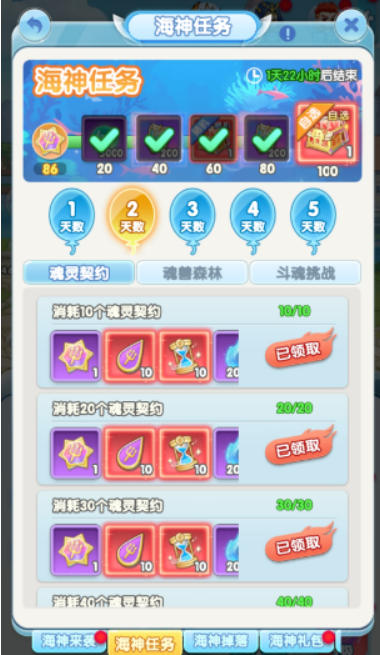 每日免费魔法[遇境商船/云巢魔法商店]: (每周二)光能药剂 𝟮.九色鹿季任务五开始啦!!猎杀时间到 𝟯.植树节活动进行中,四叶草发饰礼包在商城返场。