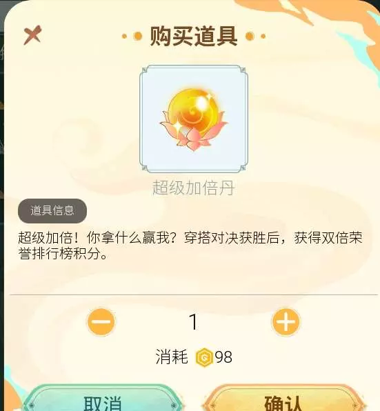 - 积分翻倍:用“超级加倍丹”,赢了荣誉积分直接×2 。