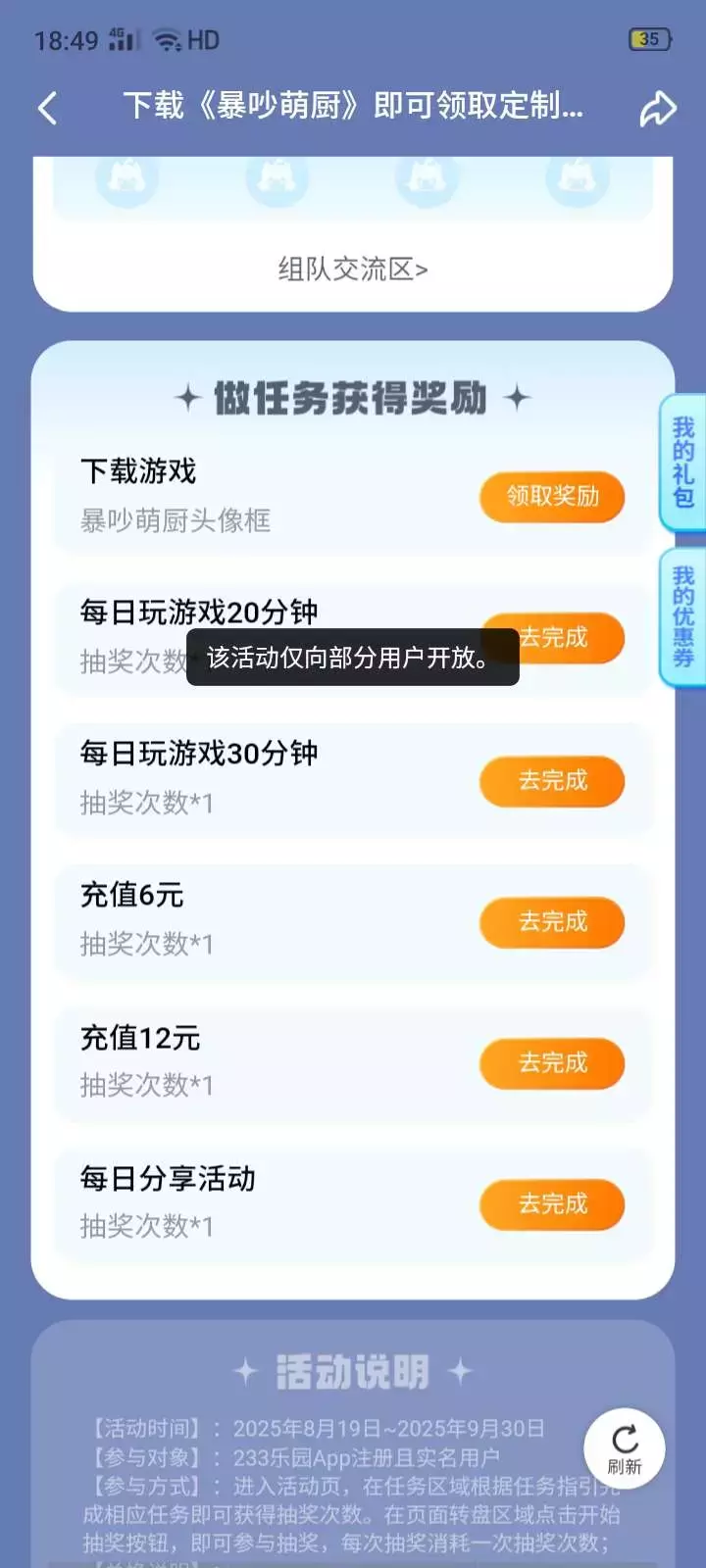 从公平性角度来看,活动仅对部分用户开放严重违背了公平原则。在同一个平台中,所有用户本应享有平等参与活动、获取奖励的机会。但这种部分用户专属活动,让另一部分用户只能望洋兴叹,这就好比一场比赛,还未开始就将部分选手拒之门外,这对广大普通用户而言极不公平,容易引发用户群体内部的矛盾与不满。