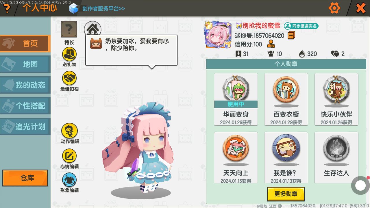 喜羊羊联动玩法上线!一起加入羊村大作战吧! 【虚空之夜】 虚空将在特殊夜晚降临,天空腐化,万物变异,发生虚空怪物攻城事件!一切未知和神秘等待冒险家探索! 【战斗升级】 全新动作战斗系统,双持武器融合玩法,超500种武器技能组合! 【探索升级】 新增地下遗迹,超大矿洞;全新烹饪玩法,超100种食谱组合等。 【喜羊羊与灰太狼全新正版联动】 2月9日-3月10日装扮、坐骑、武器等联动主题礼包上线; 2月1日-2月25日羊村大作战、逃离狼堡、天黑请睁眼联动玩法开启,完成任务兑换联动头套! 【大福利】 装扮福利:龙潮儿*1、精美自选装扮*8; 其他福利:狂撒1000000迷你币、10款热门动作、人均3000+迷你豆等更多装扮福利! 【龙年新装】 1、星辉礼盒专属装扮:星莉奈,2月9日登场! 2、龙年限定装扮:龙瑜、鲤瑶,2月9日-3月10日限定上线。 3、双星座装扮:伊希斯1月31日-3月10日、海伦娜2月17日-3月10日限定上线。 4、花小楼戏曲主题换装,2月4日上线。 5、其他多款精美装扮、坐骑上新;