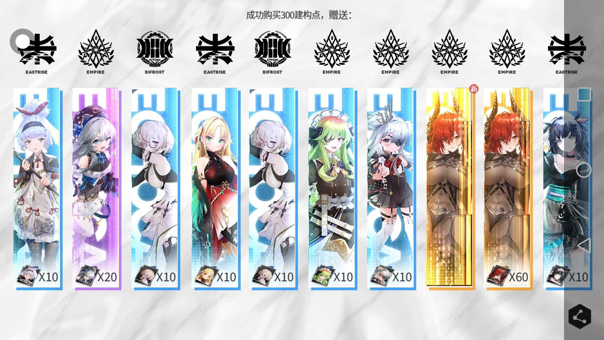 攒了两天的十连,今天早上给用了也不知道为啥会这么欧