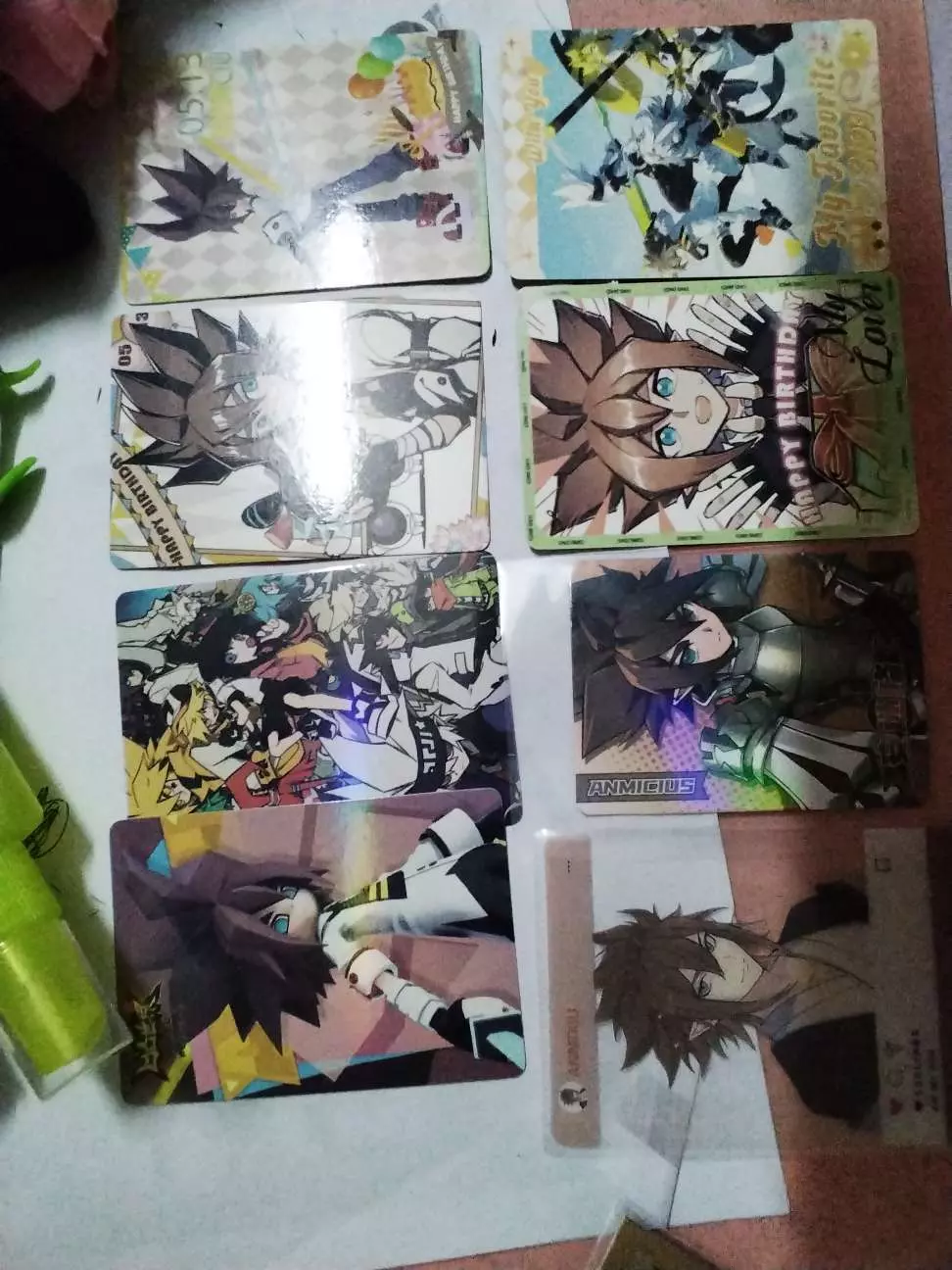 祝安安天天开心,平平安安!诅咒早日恢复!每年的5月13都要笑哦!(27岁体验卡一天!)(安安的吧唧有三个,虽然说是一样的,但找不到了……o(╥﹏╥)o)(虽然最近学业很忙,但还是来给安安庆生啦!)(安安,我为了你花了好五、六百大洋……不过虽然花钱很多很伤心,但是为了安安还是值得的!)(不过希望安安在我抽吧唧和卡的时候拦着一点你师兄,你师兄每次高卡位来的好勤快,吧唧也经常抽到,顺便把嘉德罗斯也拦一下)(安安在我抽卡和吧唧的时候一定要多多来看我哦!❤)(封面是临摹百度一张的图片,画手目前不清楚,如果有人知道画手,还挺麻烦代替我跟那个画手说一声抱歉#,谢谢!)(为什么最多只能传9张!吧唧有些没拍到啊!)(因为反光的原因,所以图片不是很清楚)#安迷修生日快乐 (爱你!安安!)(不开心的时候也不用强颜欢笑哦,希望你能多为自己着想)