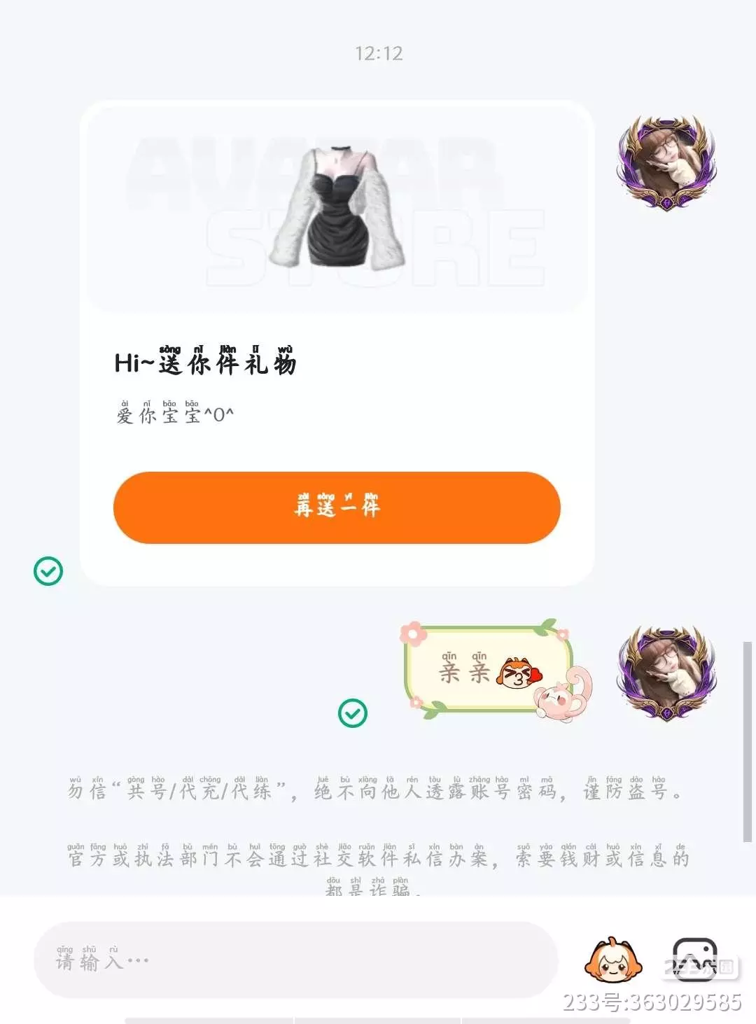 自己最近送的礼,嗯,对