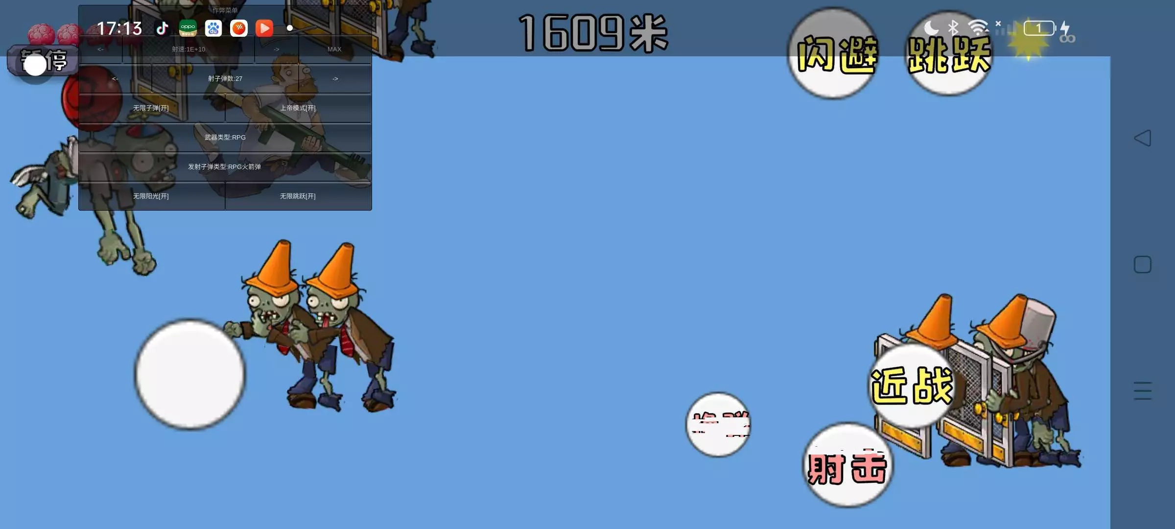 666严都不严了,丧尸直接卡上边来了,还有我们开个无限跳跃,跳到气球僵尸上,我们就可以获得一只专属大夫骑宠