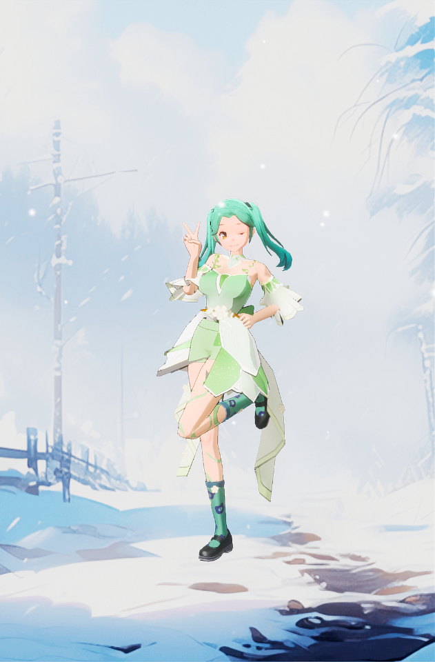 绿色可爱的甜心少女