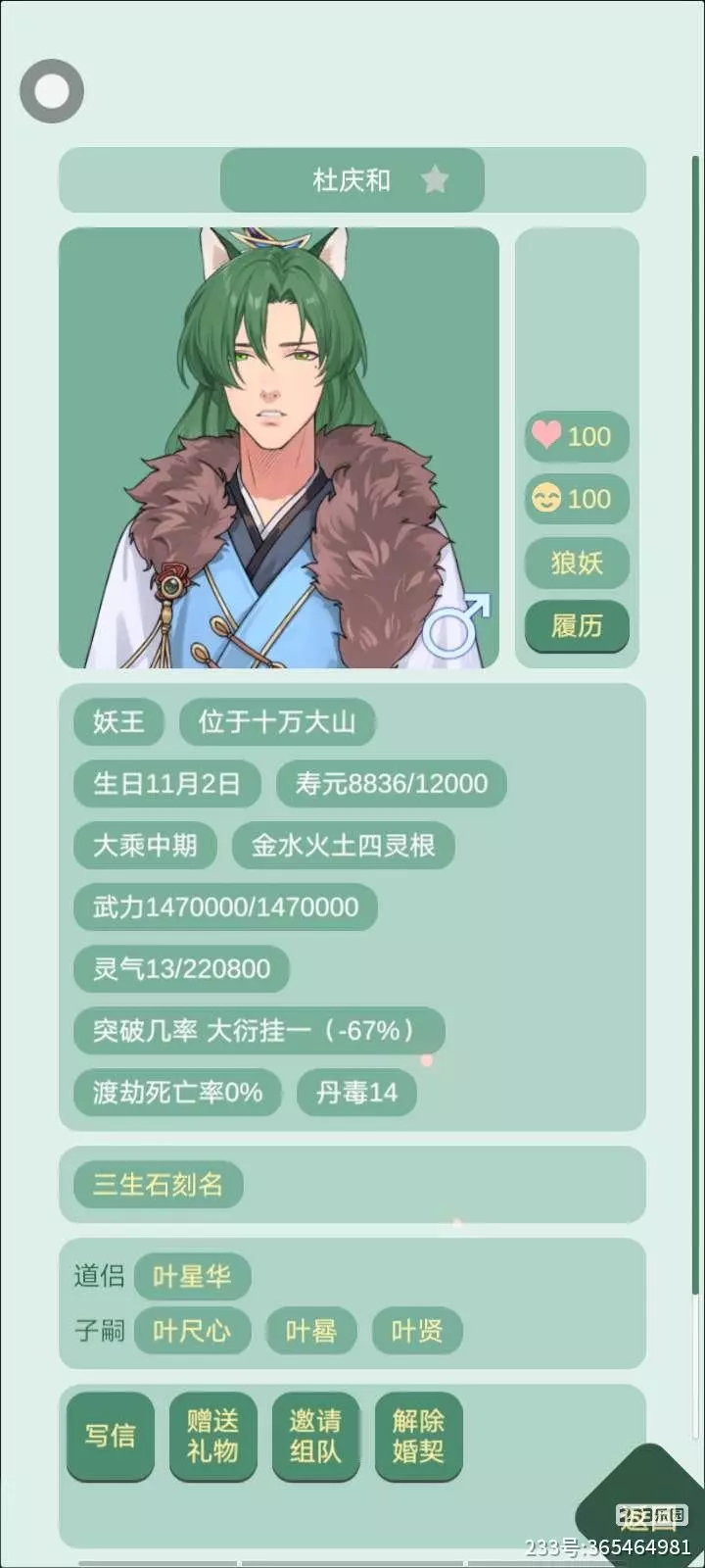 不过后面的这俩人你们翻脸的速度,令我敬佩,送还春丹的时候,你可不是这么说的。“魔皇大人”你也是第一次见我的时候就说要把我嘎了,现在呢?好感度和友情度上来之后还是要把我嘎了,咋了我就难逃一死吗?可能只有都到达70以后才能给我个好脸色。修为高是真吃香啊,就聊了几下,他的友情度就上来了,只能说“新华大地”恐怖如斯!(星华大帝)(反正修为高了之后跟他们刷好感度的话了,是真的会比以前效率高很多。那我之前讨好的那个女魔皇死了算什么,算我时间多吗?本来距离三生石台,只有一年了,想过来碰碰运气的,没想到真逮着了一个男的魔皇,但是怎么说呢?这次我想跟狐族首领结契)