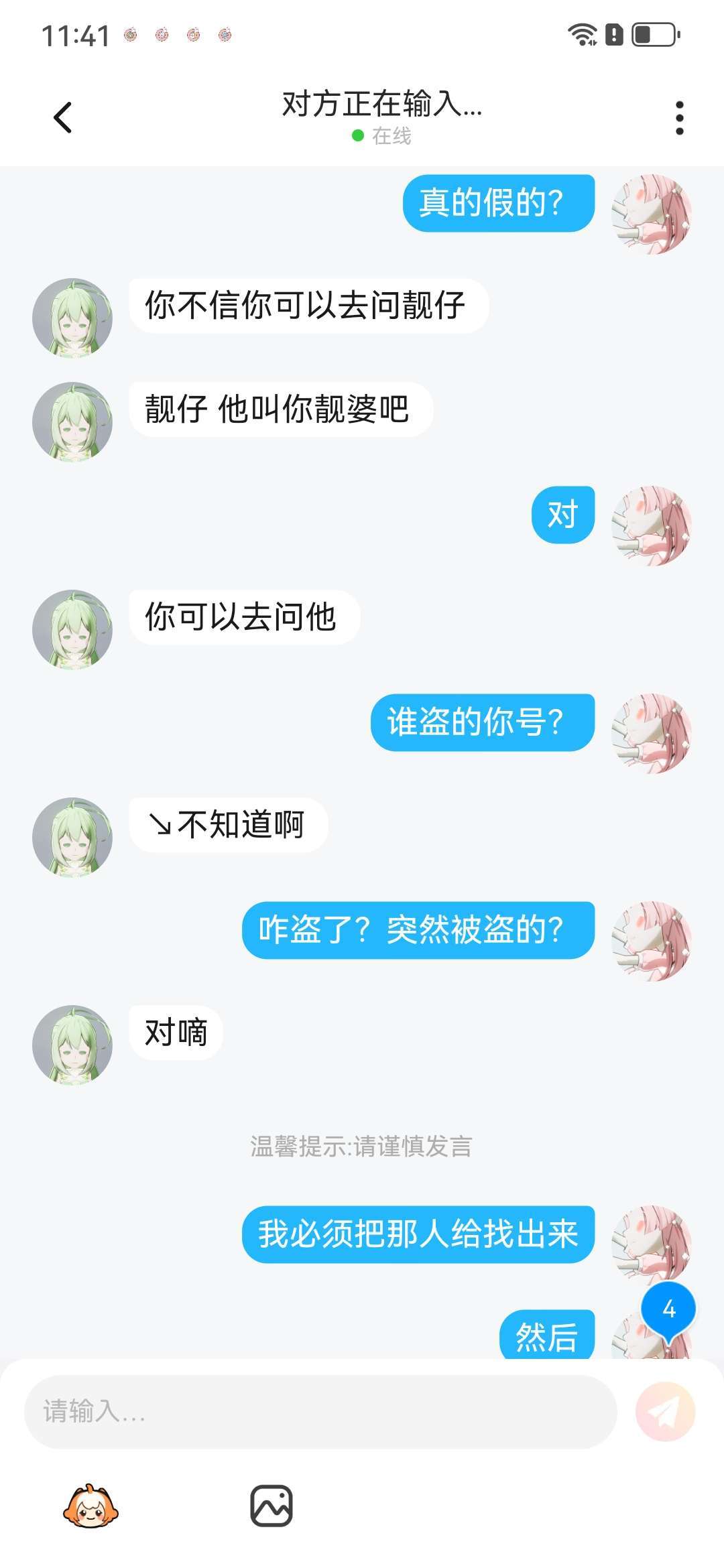 不是谁盗我宝号呀!!!别这样好不?*罒▽罒*劝告你一次从我宝号里面退出来!!!!要不然有你好受!!!