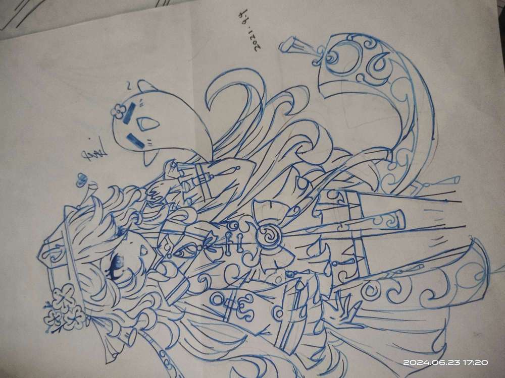 白皇后~她身上画的横杠杠,其实是为了区分颜色深浅,日后涂色方便啦(还没勾线→_汁)
