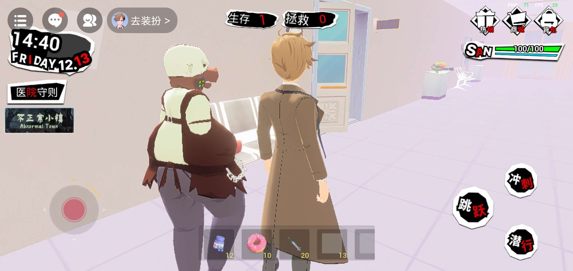 什么东西?吃个东西都会扣血,本来是白天。结果白天都变成魂了还有我的包包怎么在地上而且白天还会有门,而且那个鬼也有,但是就是鬼不抓我那个门到了晚上就进不去了然后我重新进入就没有门了