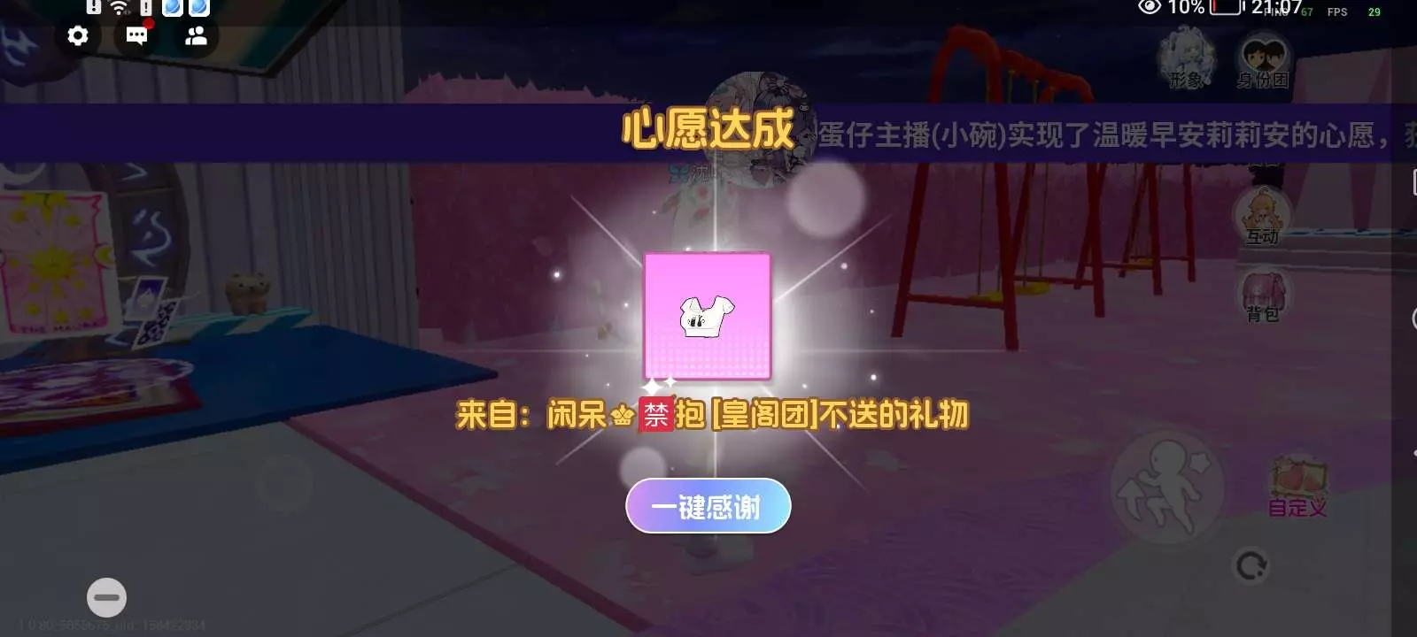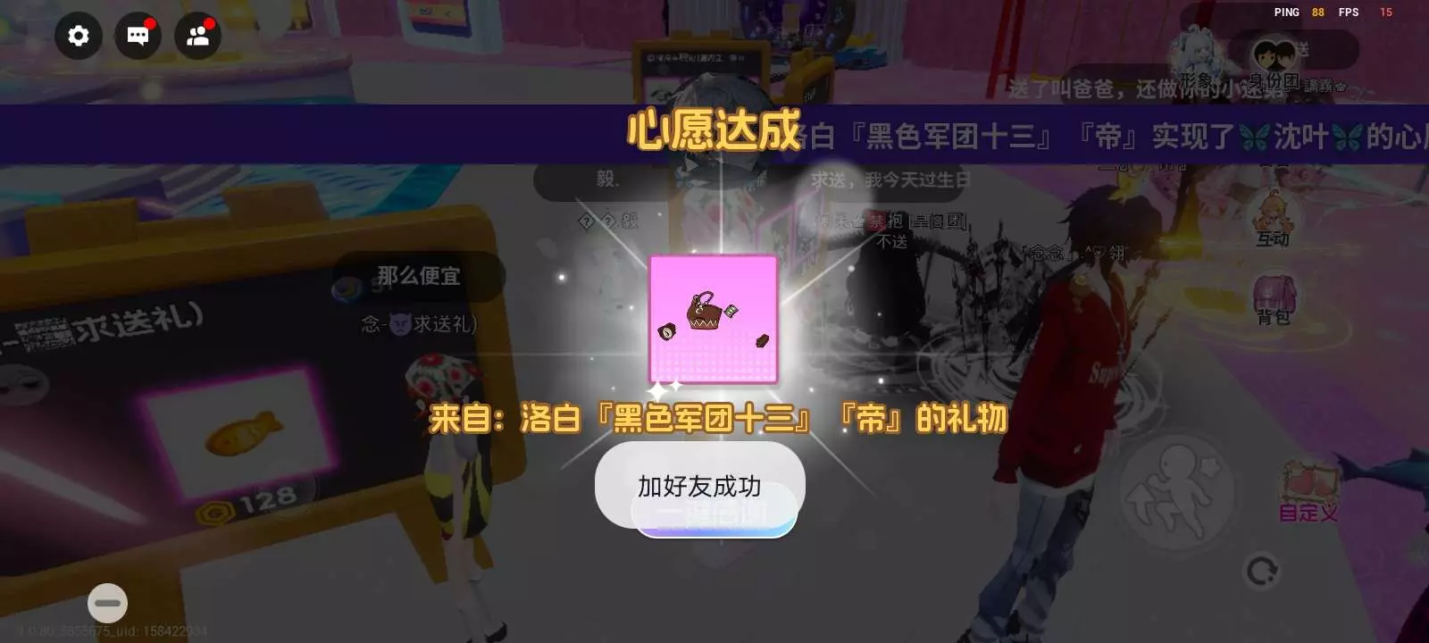 心愿广场可以送衣服啦! ※所得皆所愿 所遇皆所求~将你的心愿单展示出来,广场的朋友们都可以看到,说不定谁就会送你衣服啦~浪漫的邂逅与愉快的时光全都要! ※暖心留言~留言板你常看吗?那里会不会有匿名小故事? ※你的声音不再平凡~让我们感谢每一位送衣服的老板!排行榜,专属登场弹幕,TA全都有!