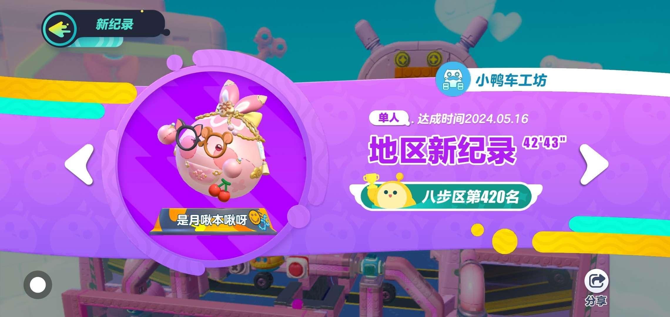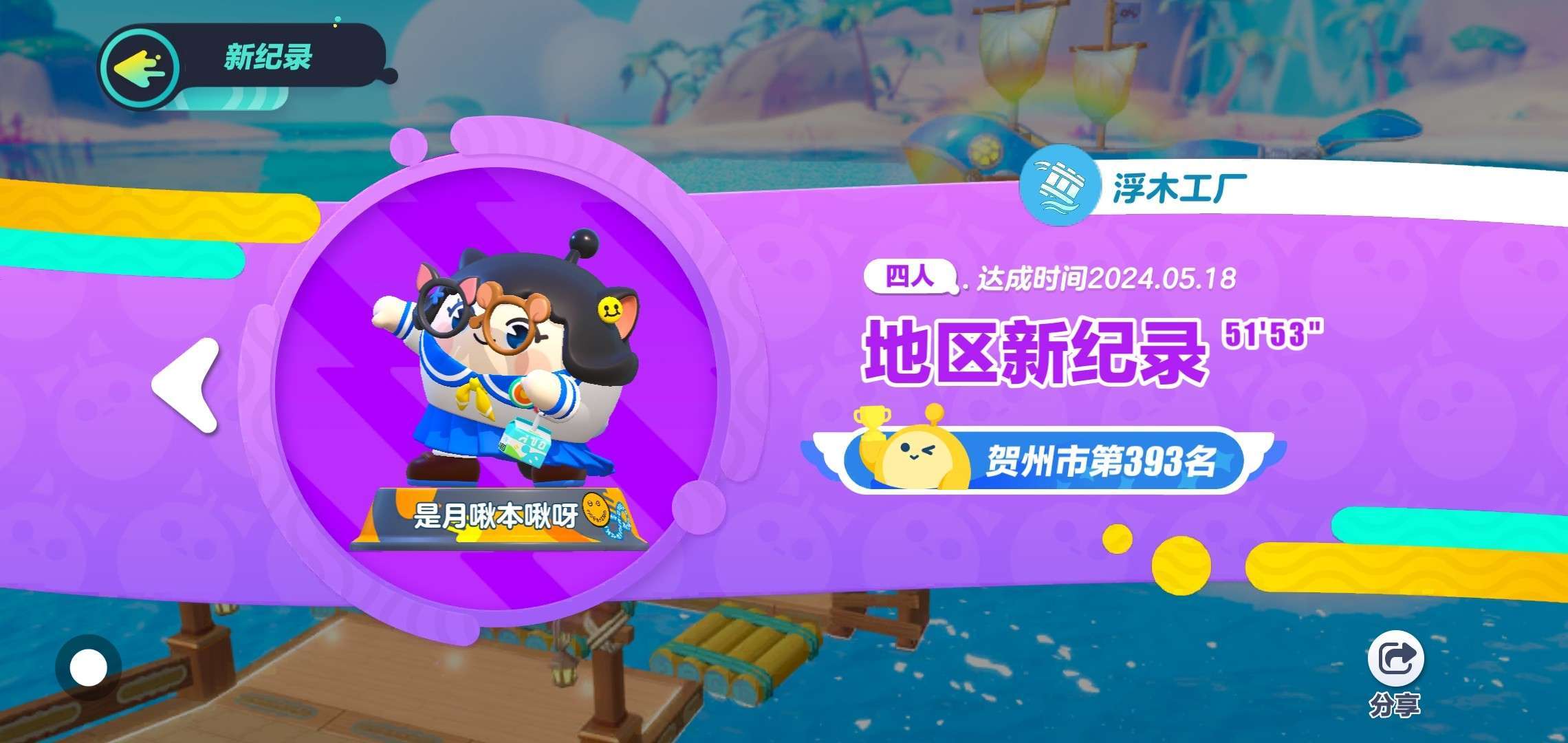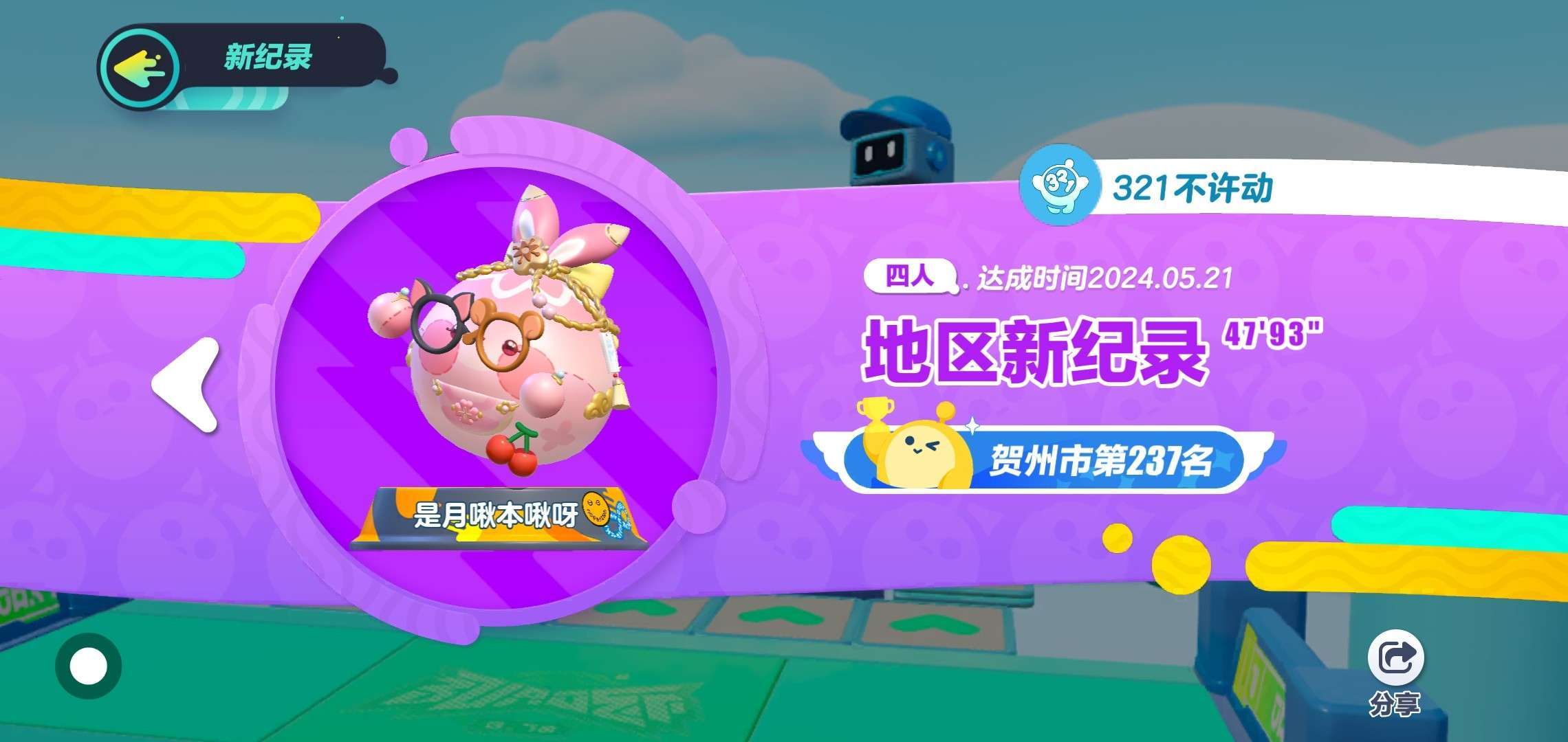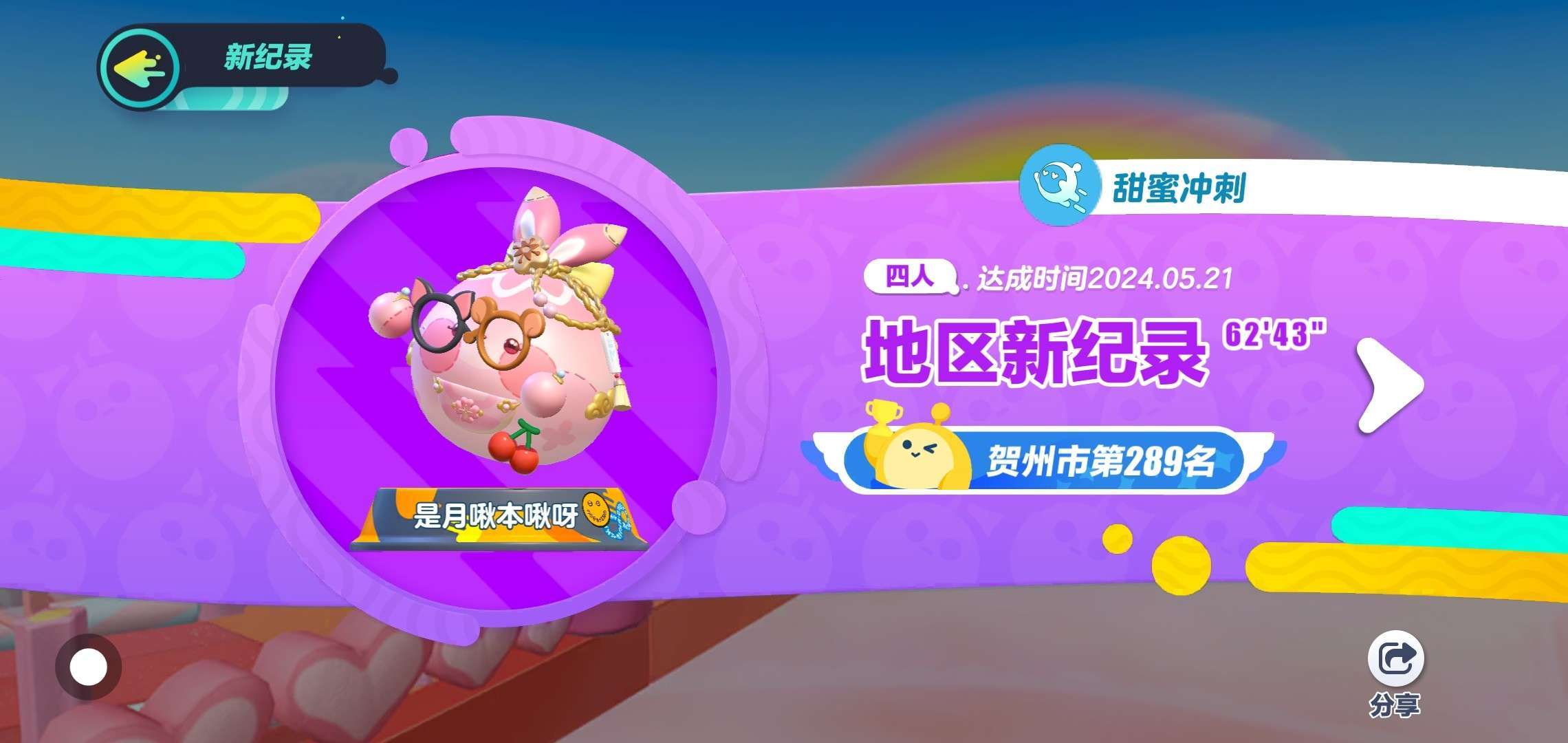 蛋仔名:是月啾本啾呀 段位:凤凰 等级:30 最近喜欢发短剧