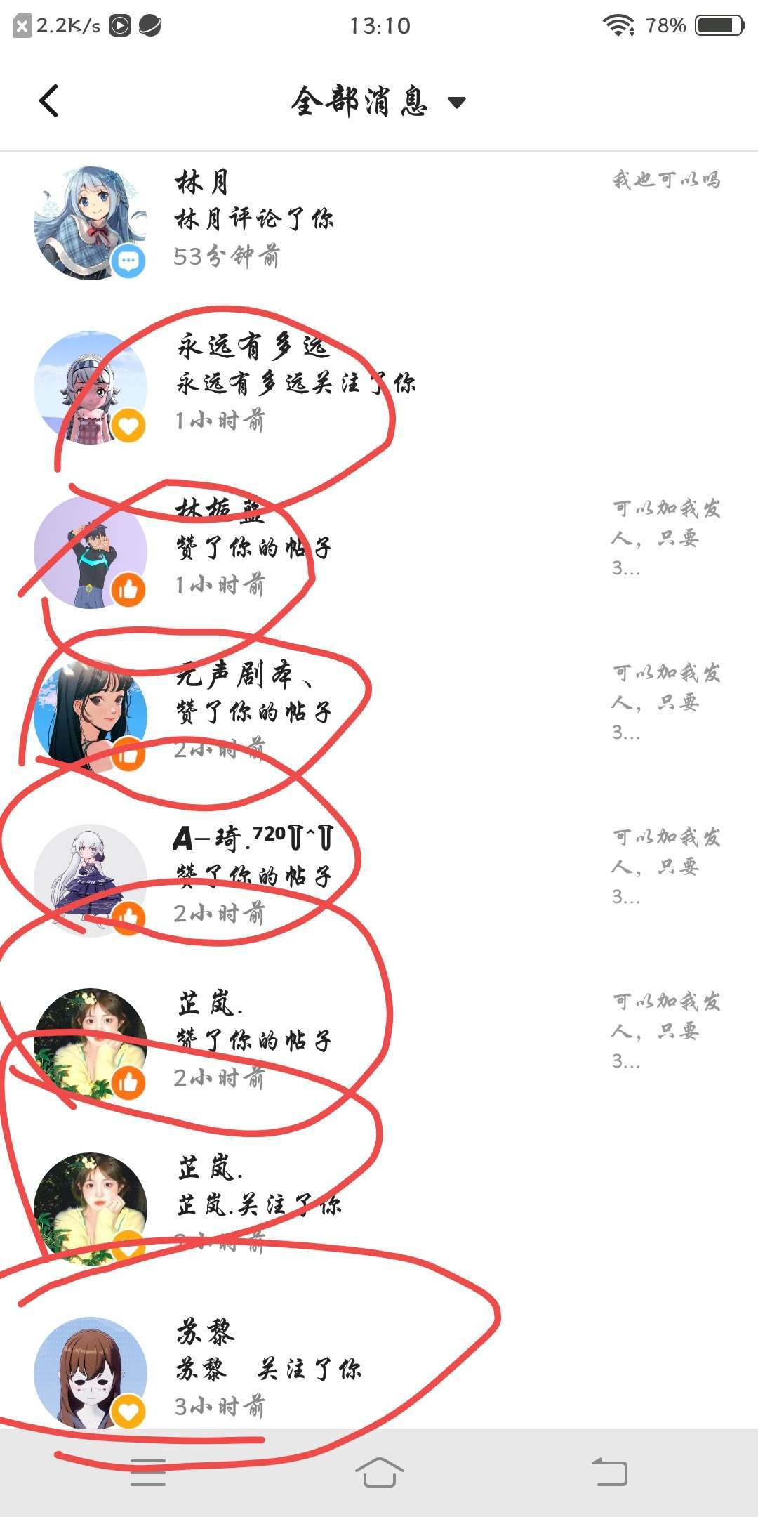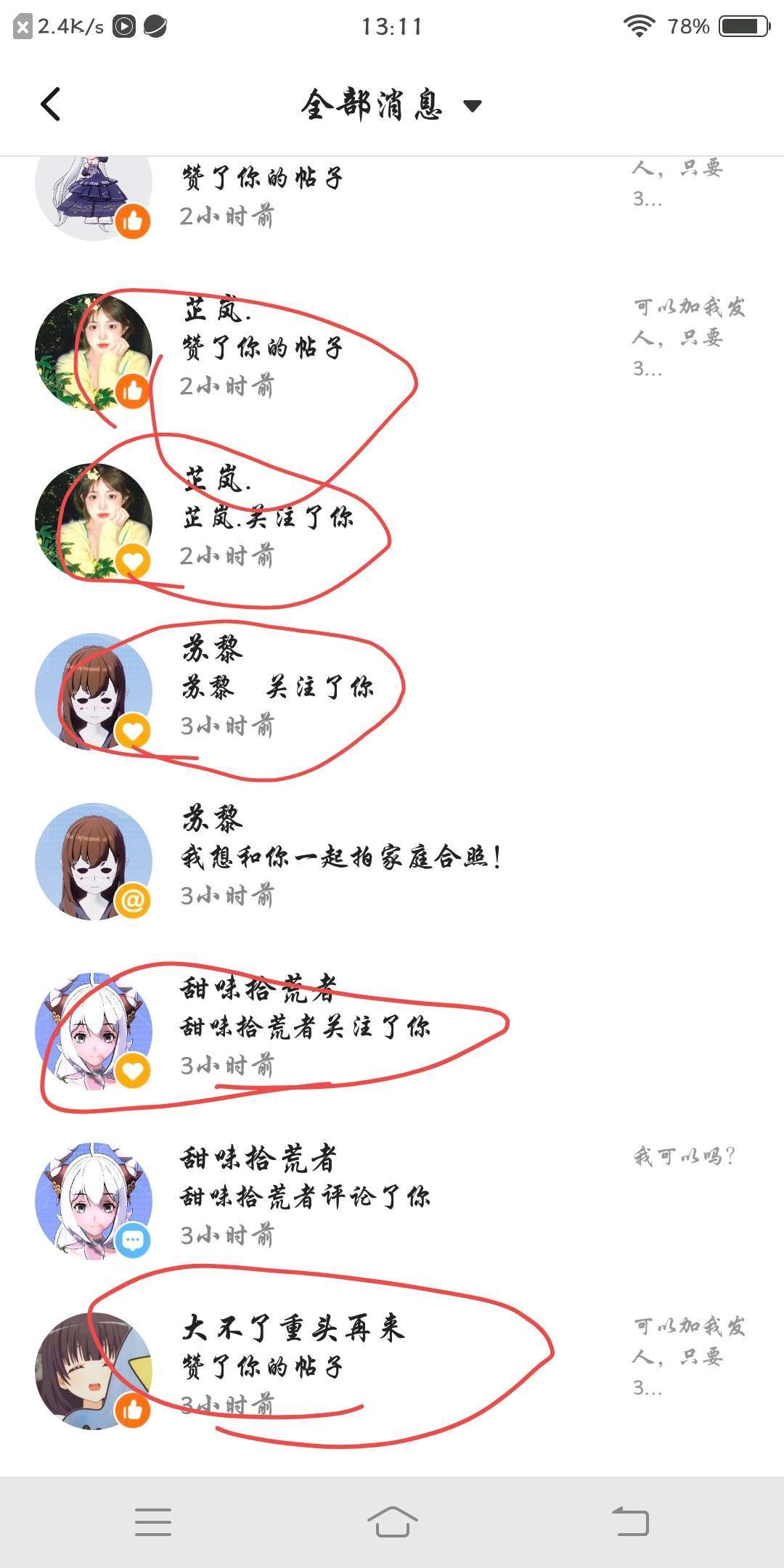 我圈出来的是关注我的和点赞了的